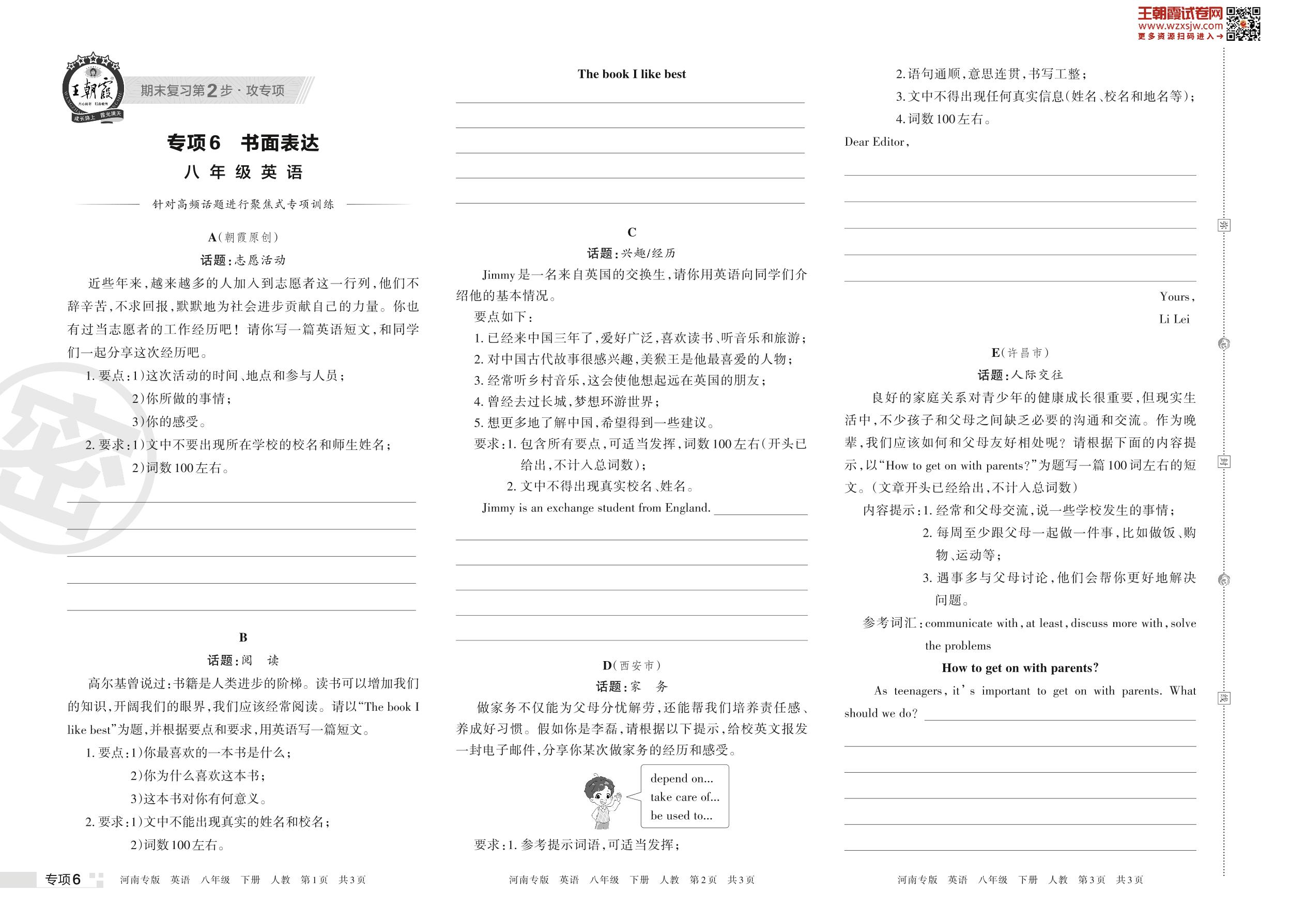 王朝霞期末专项卷——书面表达八年级下册英语(人教版)_R230426102736753【6】