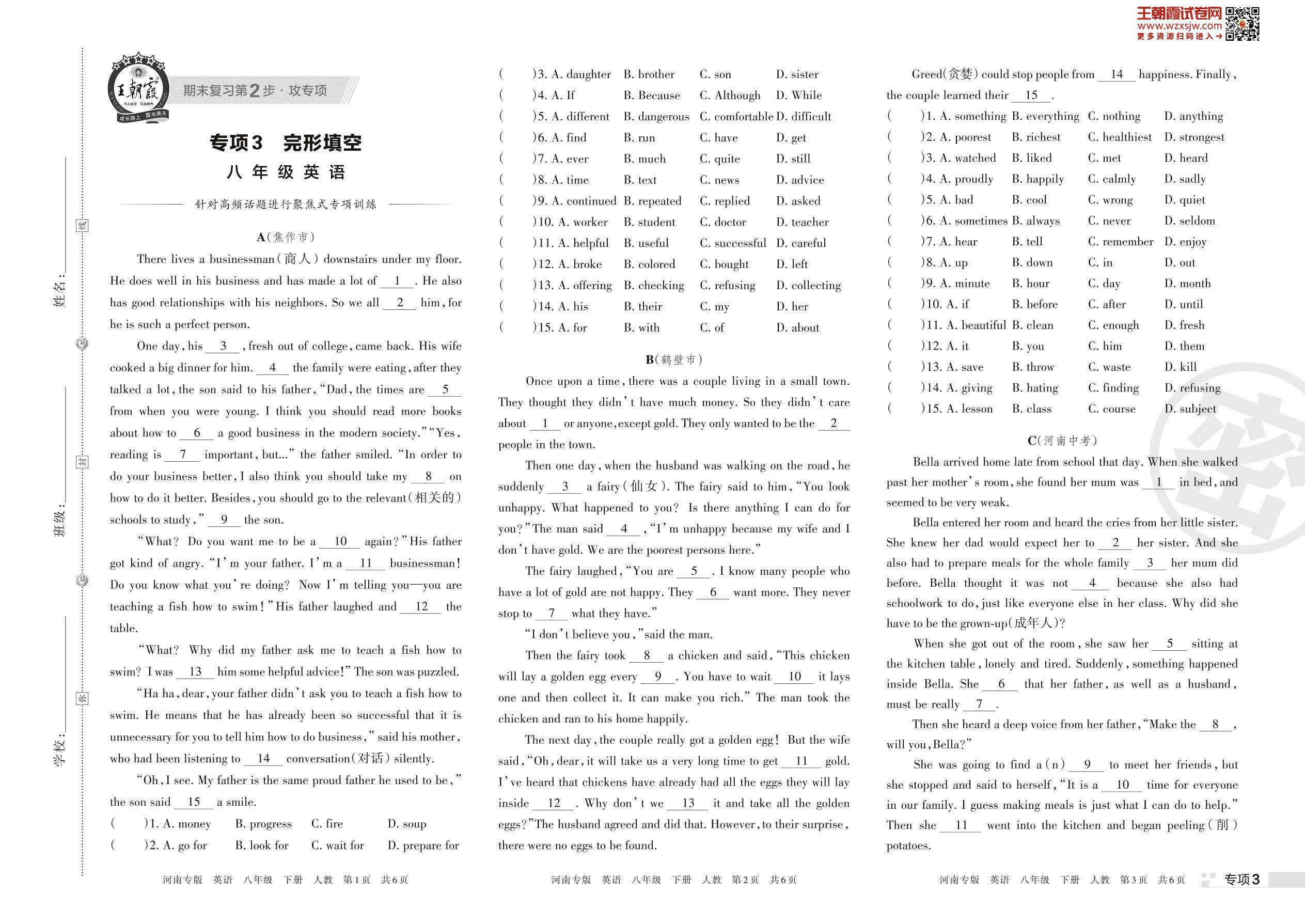 王朝霞期末专项卷——完形填空八年级下册英语(人教版)_R230426102736810【3】