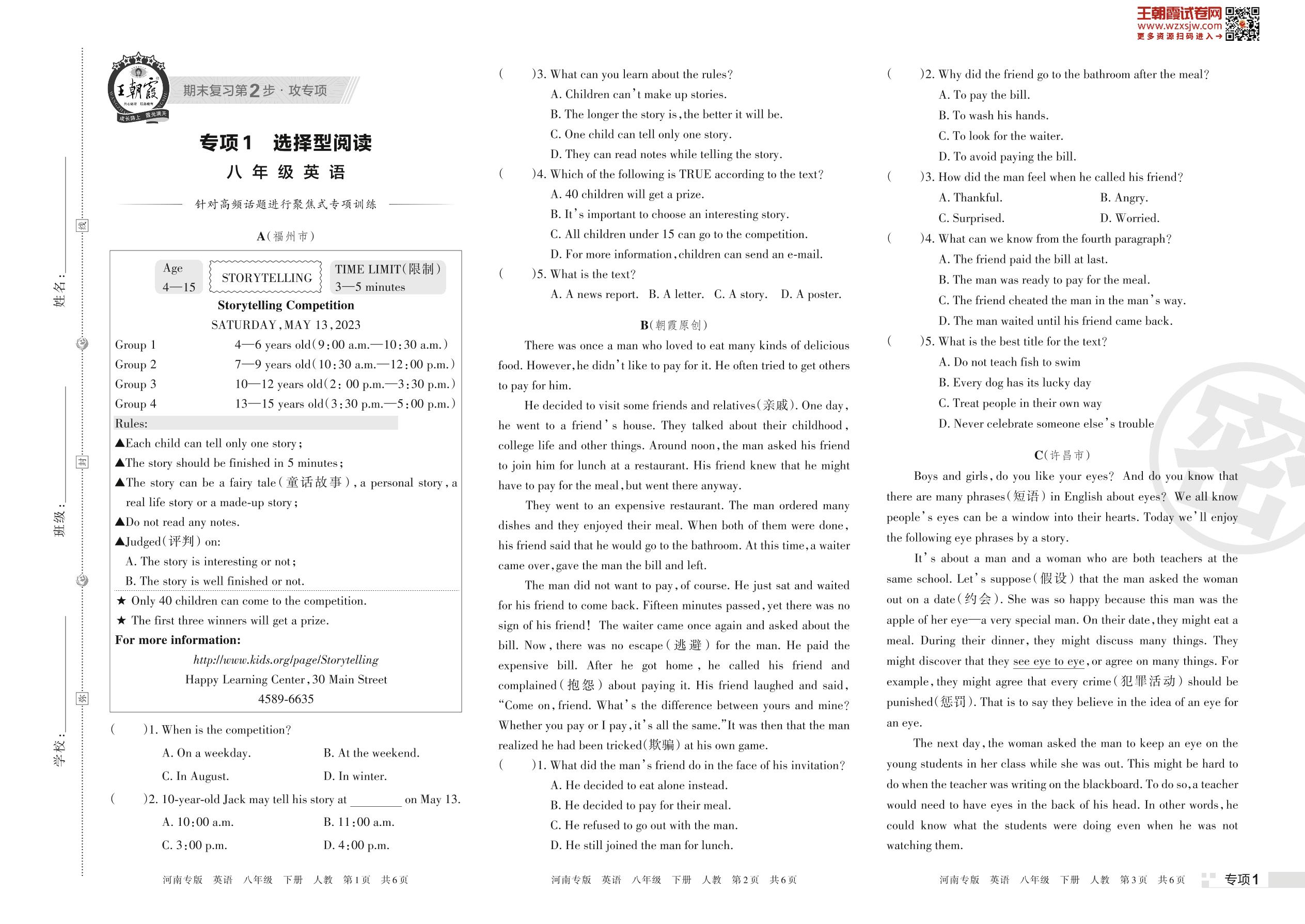 王朝霞期末专项卷——选择型阅读八年级下册英语(人教版)_R230426102736556【1】