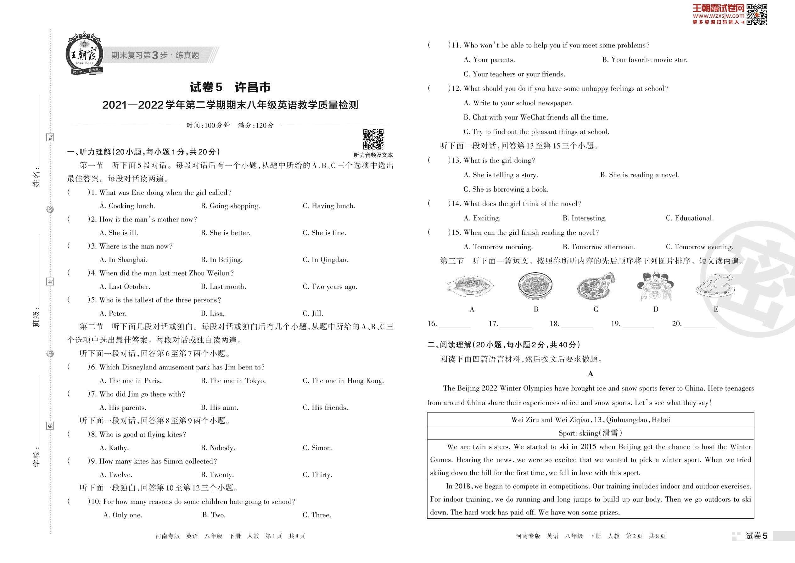 许昌市2021—2022学年第二学期期末八年级英语教学质量检测(人教版)【5】