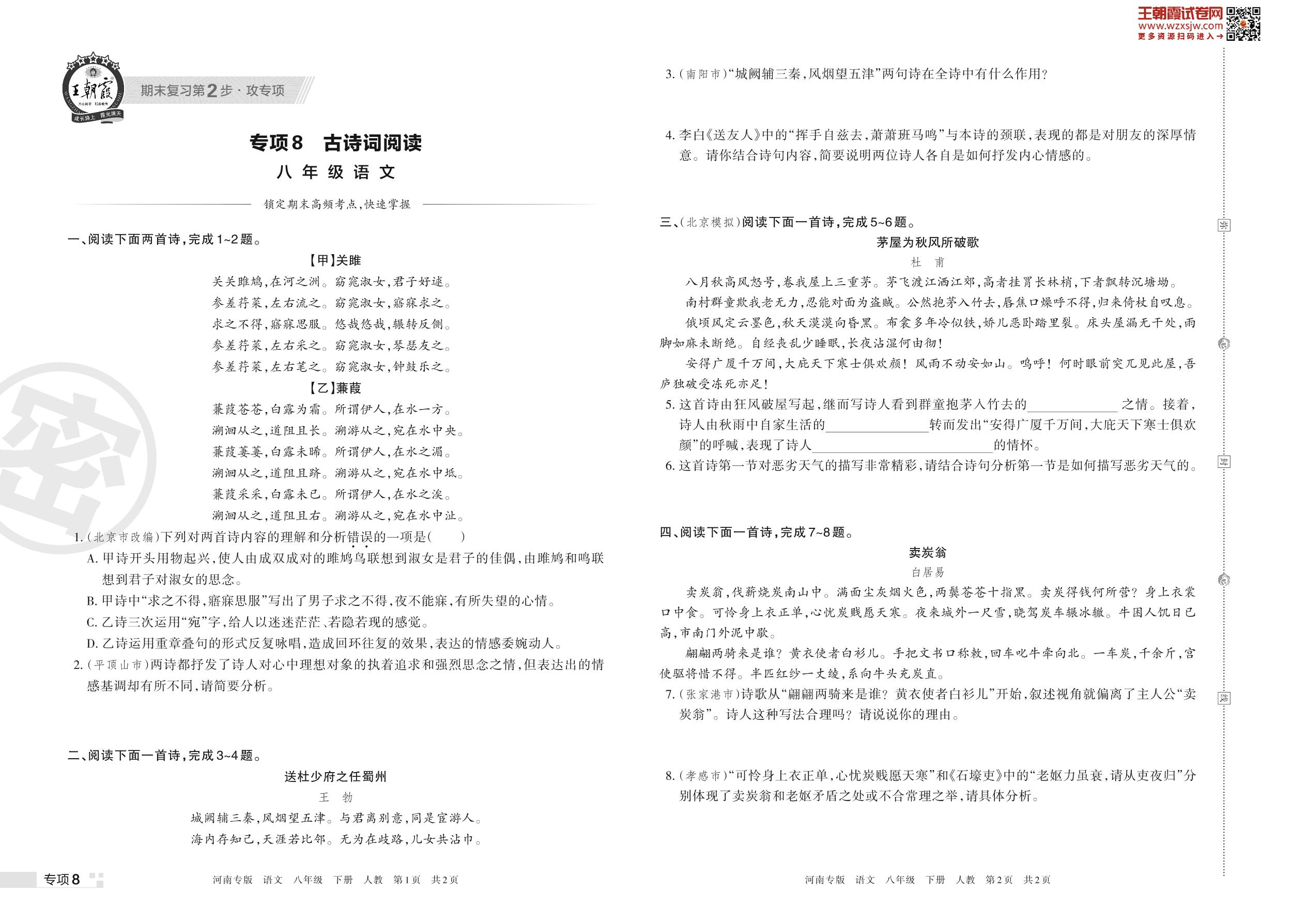 王朝霞期末专项卷——古诗词阅读八年级下册语文(人教版)_R230426103719516【8】