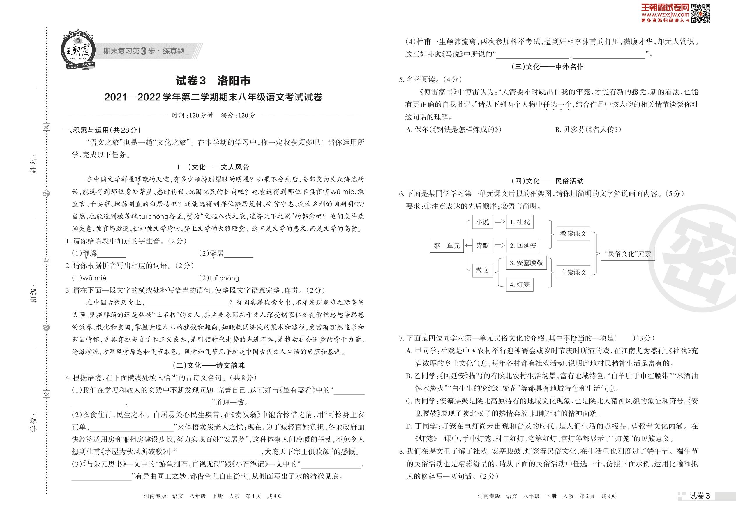 洛阳市2021—2022学年第二学期期末八年级语文考试试卷(人教版)【3】
