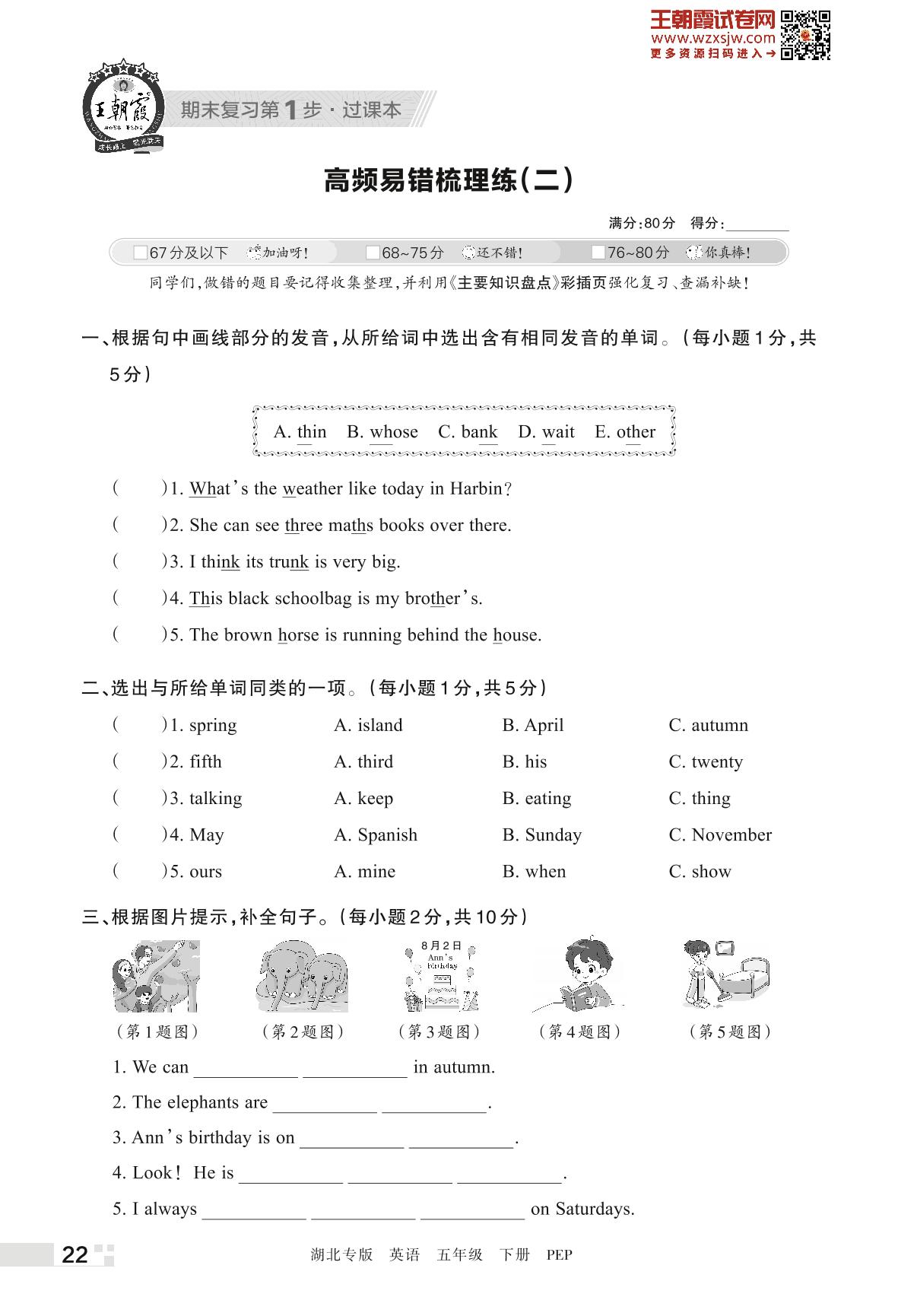 王朝霞期末过课本——高频易错梳理练(二)五年级下册英语(PE版)