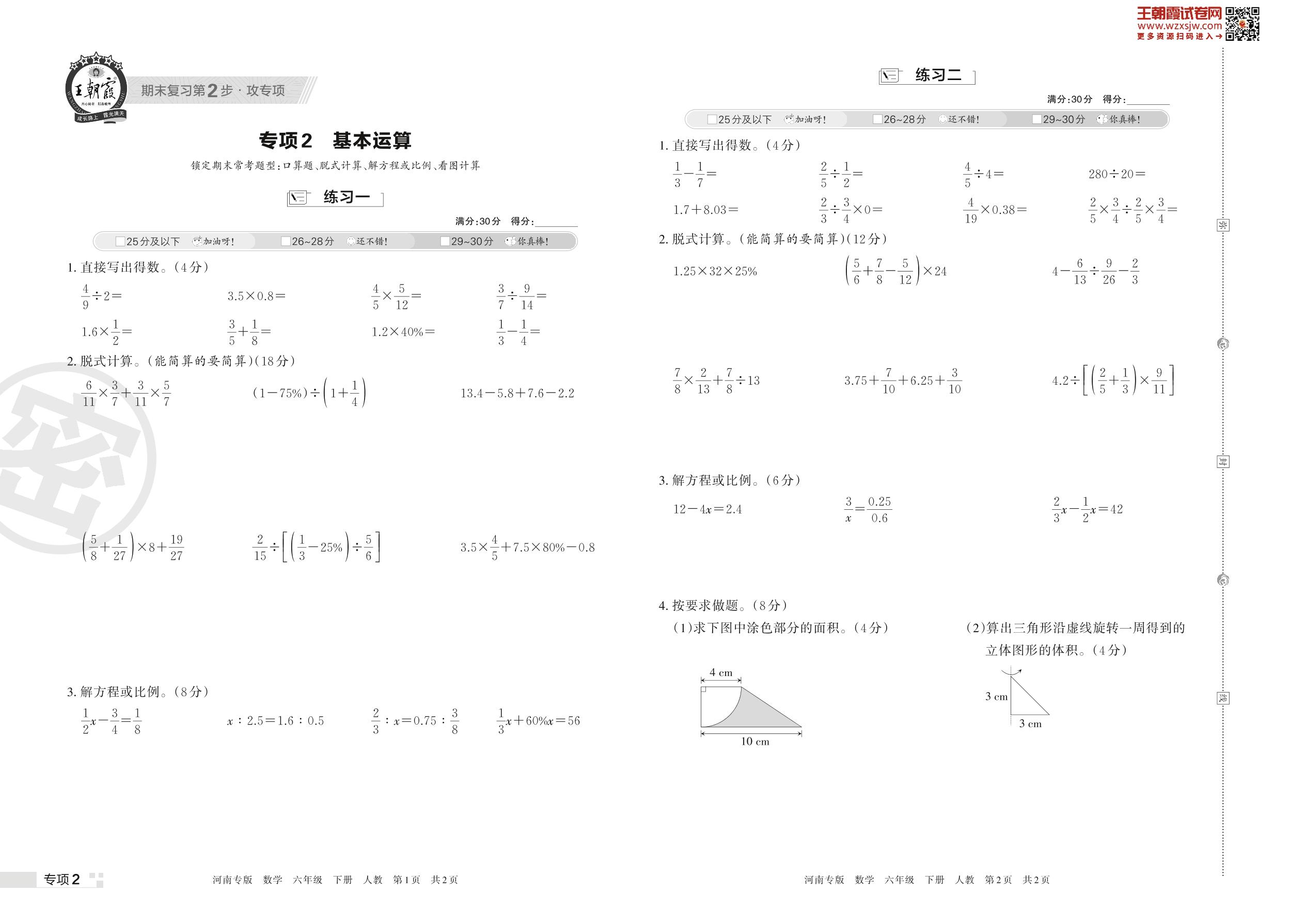 王朝霞期末专项卷——基本运算六年级下册数学(人教版)_R230426104750635【2】