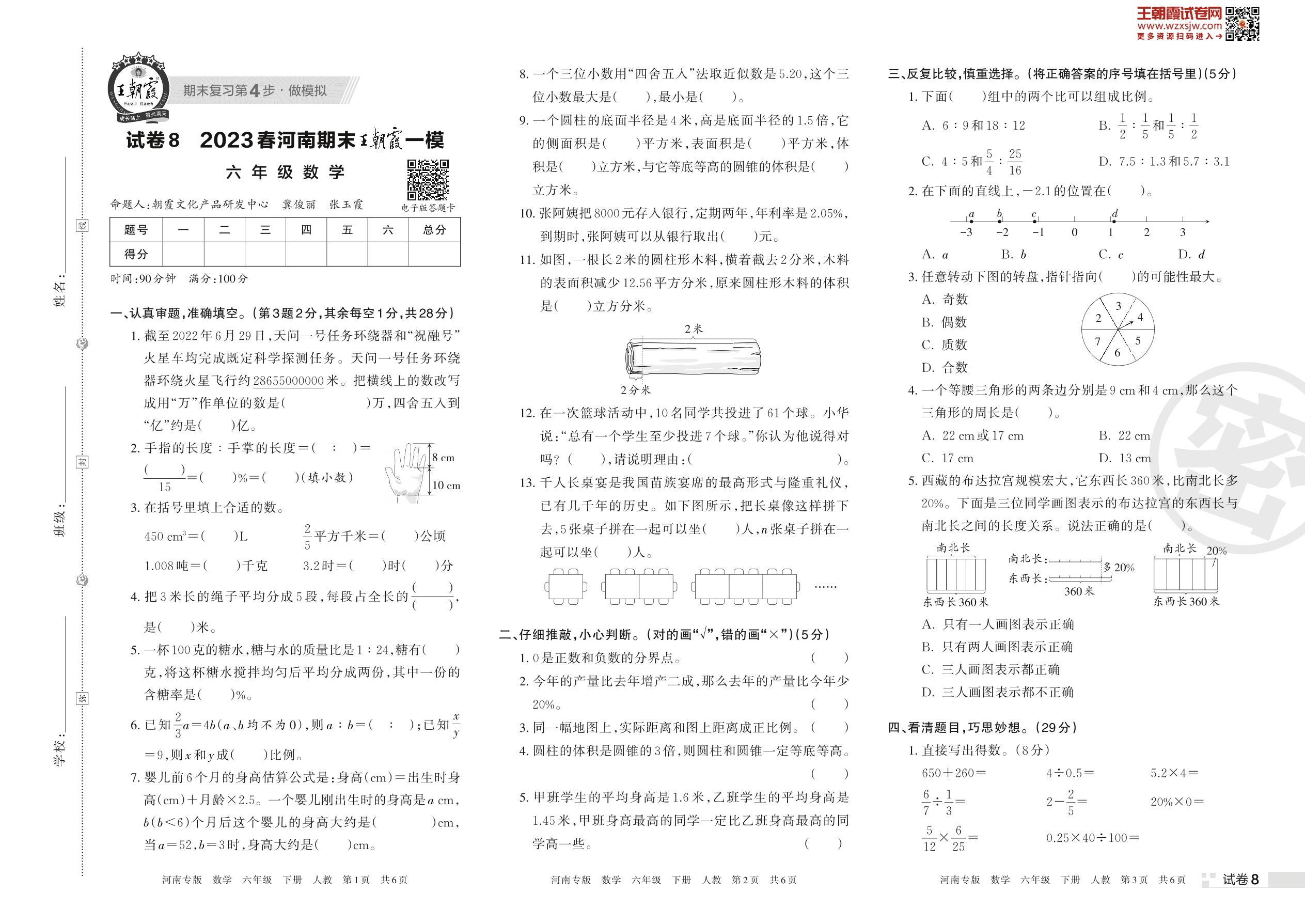 王朝霞期末模拟卷六年级下册数学(人教版)_R230426104752304【8】