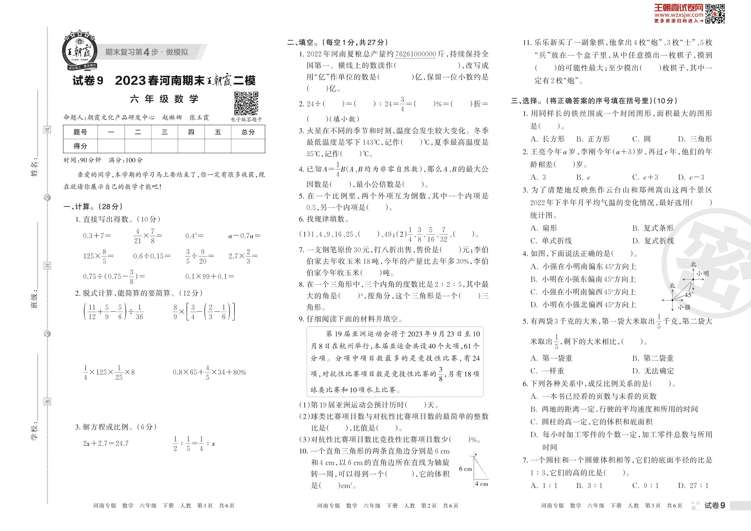 王朝霞期末模拟卷六年级下册数学(人教版)_R230426104752493【9】