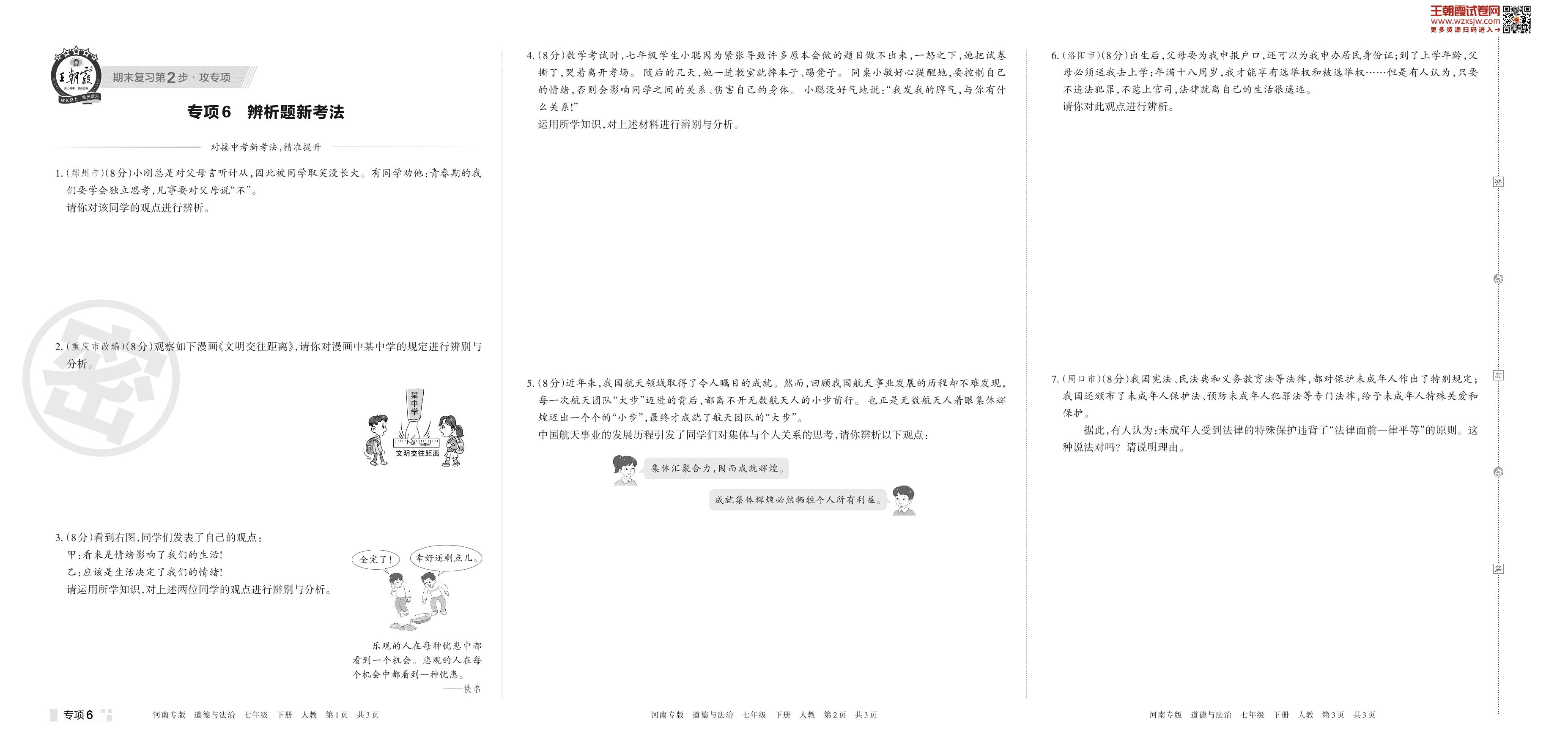 王朝霞期末专项卷——辨析题新考法七年级下册道德与法治(人教版)_R230426110147208【6】