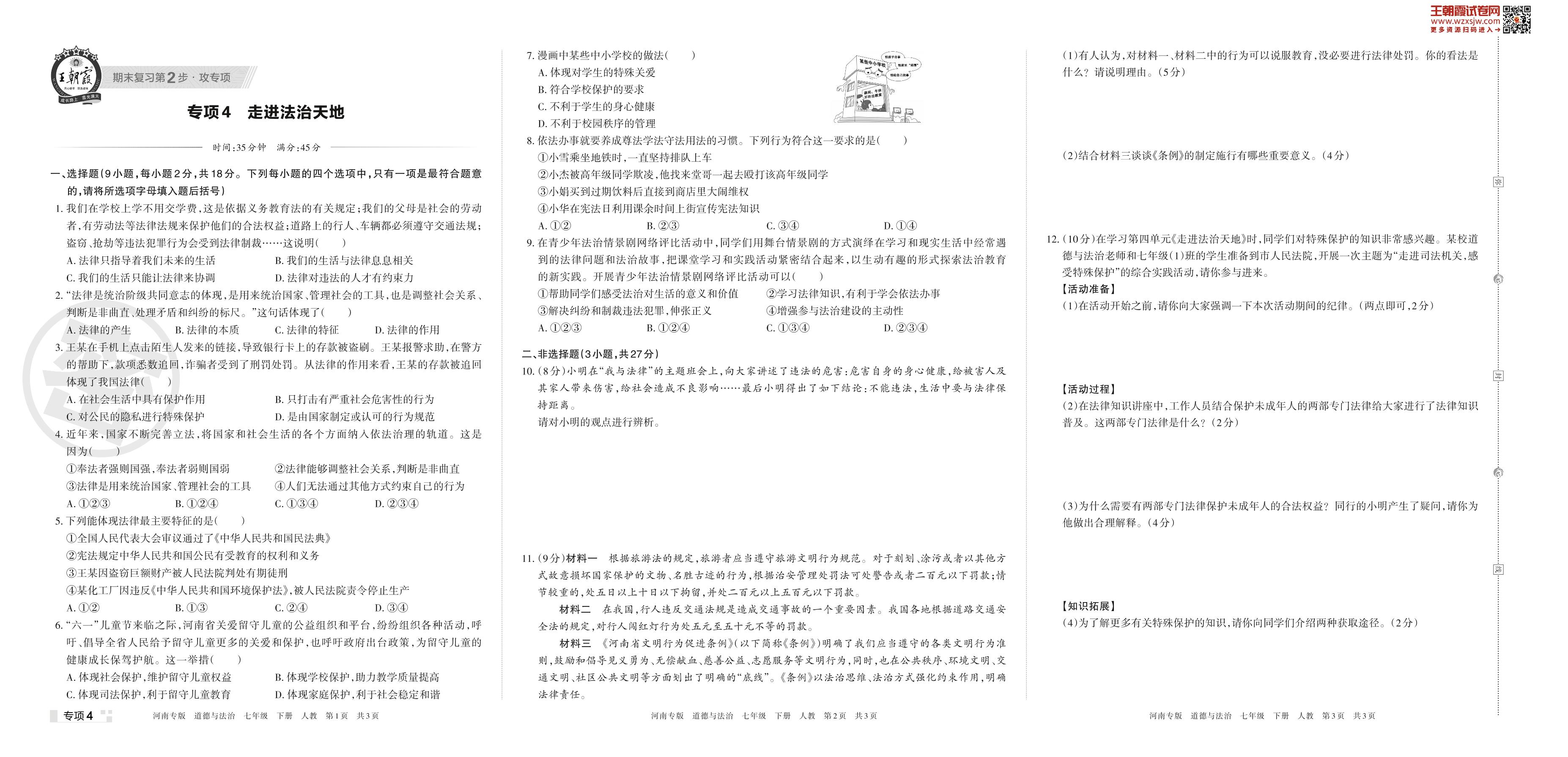 王朝霞期末专项卷——走进法治天地七年级下册道德与法治(人教版)_R230426110147174【4】