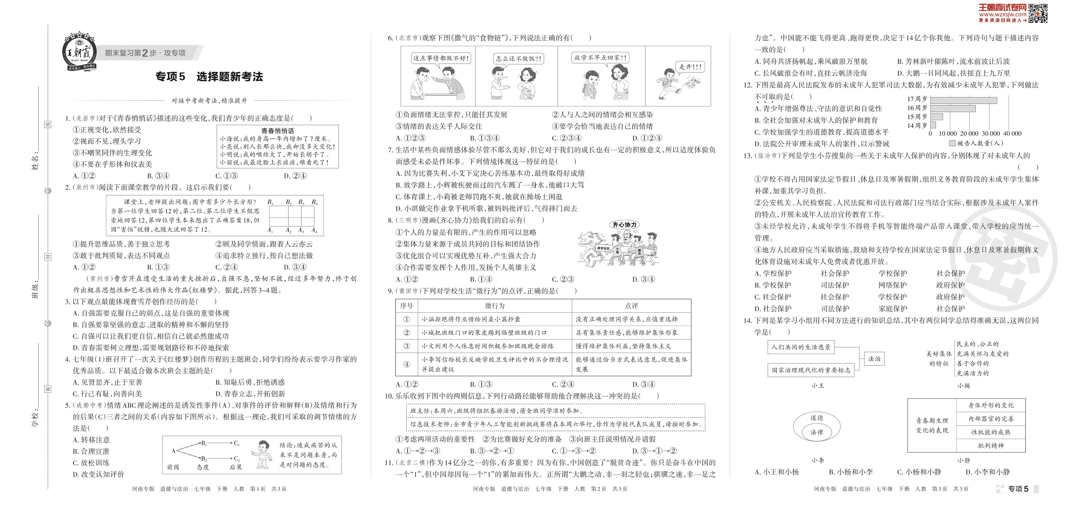 王朝霞期末专项卷——选择题新考法七年级下册道德与法治(人教版)_R230426110147593【5】