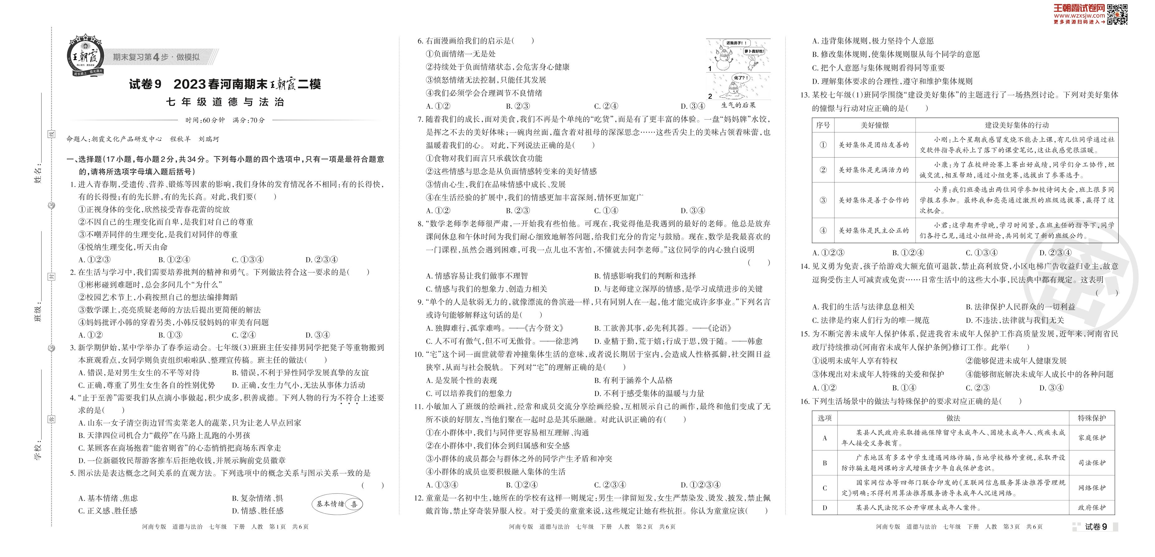 王朝霞期末模拟卷七年级下册道德与法治(人教版)_R230426110149802【9】
