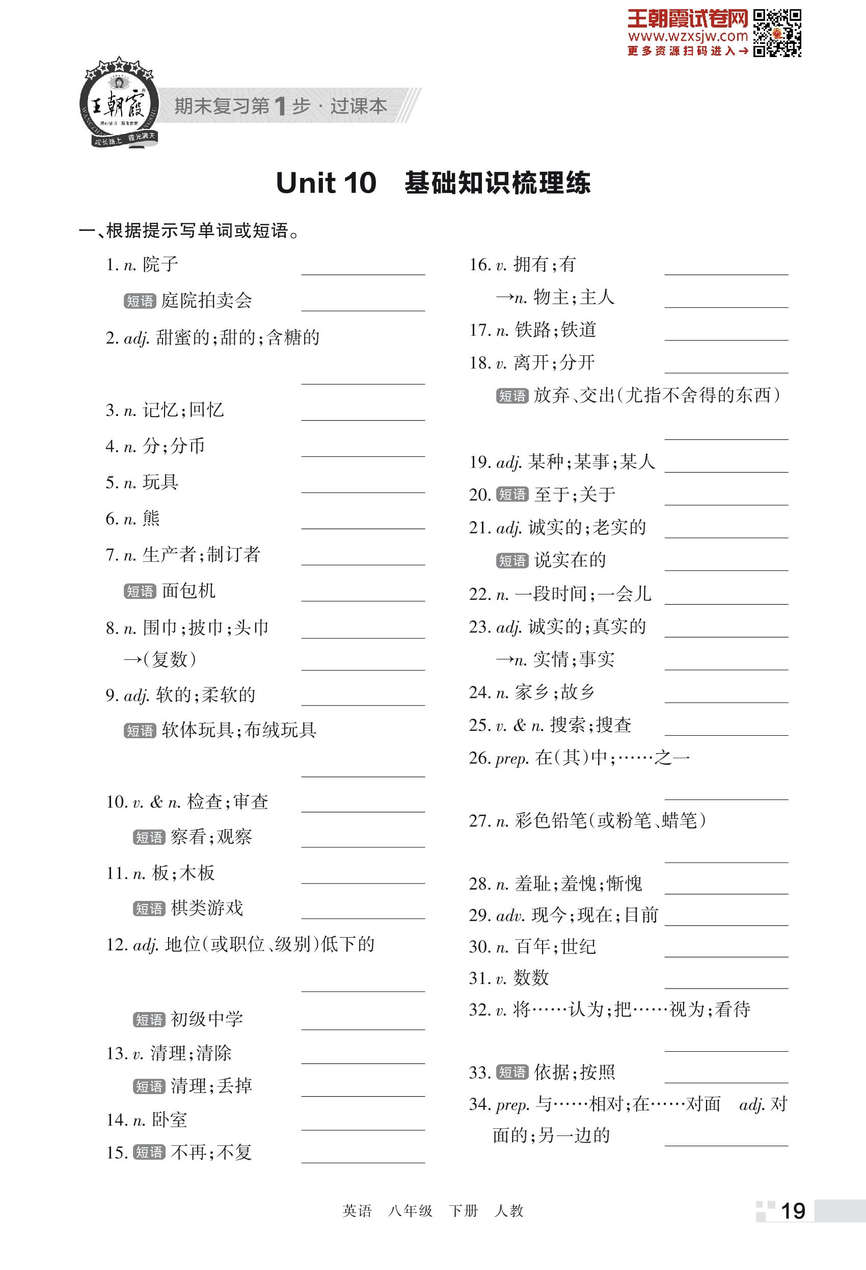 王朝霞期末过课本——Unit 10 基础知识梳理练八年级下册英语(人教版)_R230426110253778