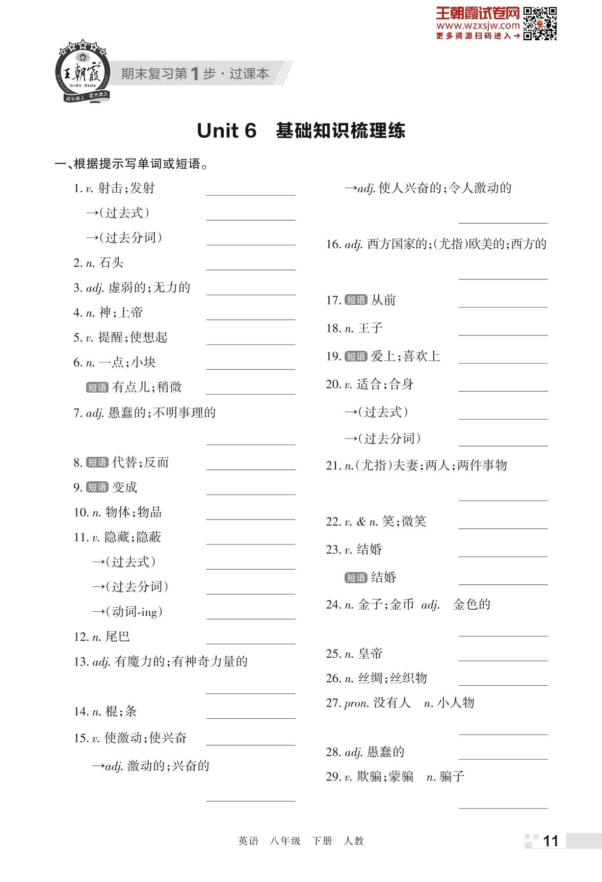王朝霞期末过课本——Unit 6 基础知识梳理练八年级下册英语(人教版)_R230426110253333