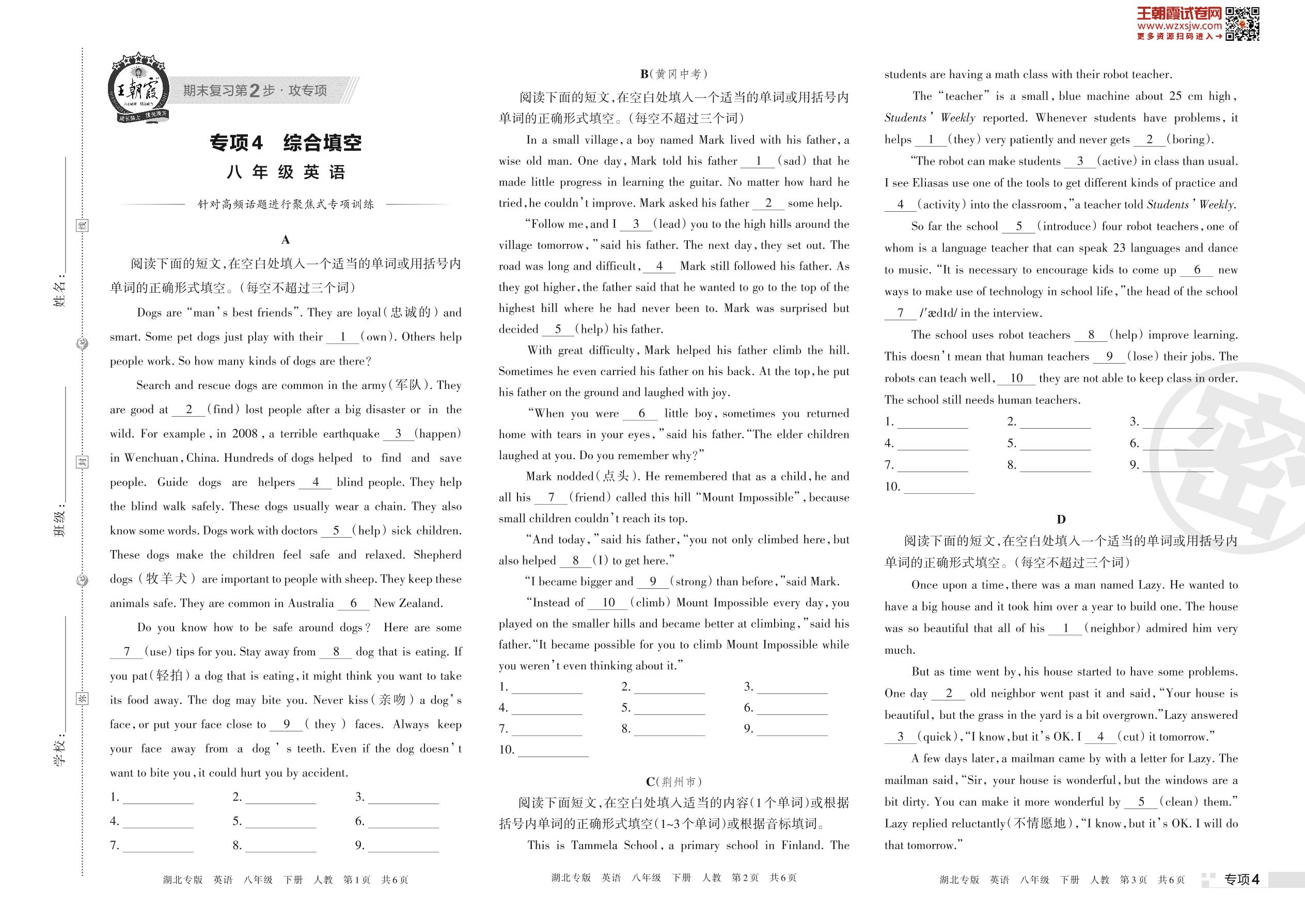 王朝霞期末专项卷——综合填空八年级下册英语(人教版)_R230426110255865【4】