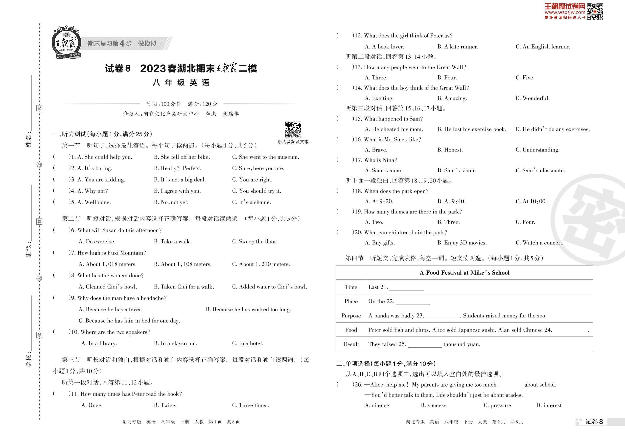 王朝霞期末模拟卷八年级下册英语(人教版)_R230426110256934【8】