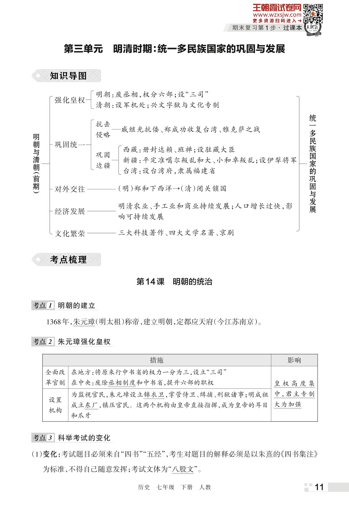 王朝霞期末知识梳理——第三单元 明清时期:统一多民族国家的巩固与发展七年级下册历史(人教版)_R230426110937235