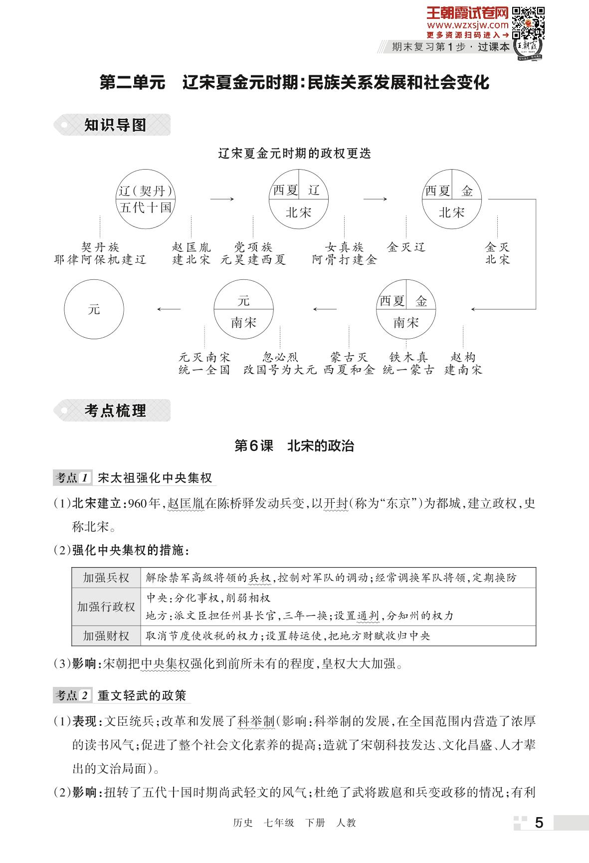 王朝霞期末知识梳理——第二单元 辽宋夏金元时期:民族关系发展和社会变化七年级下册历史(人教版)_R230426110937772