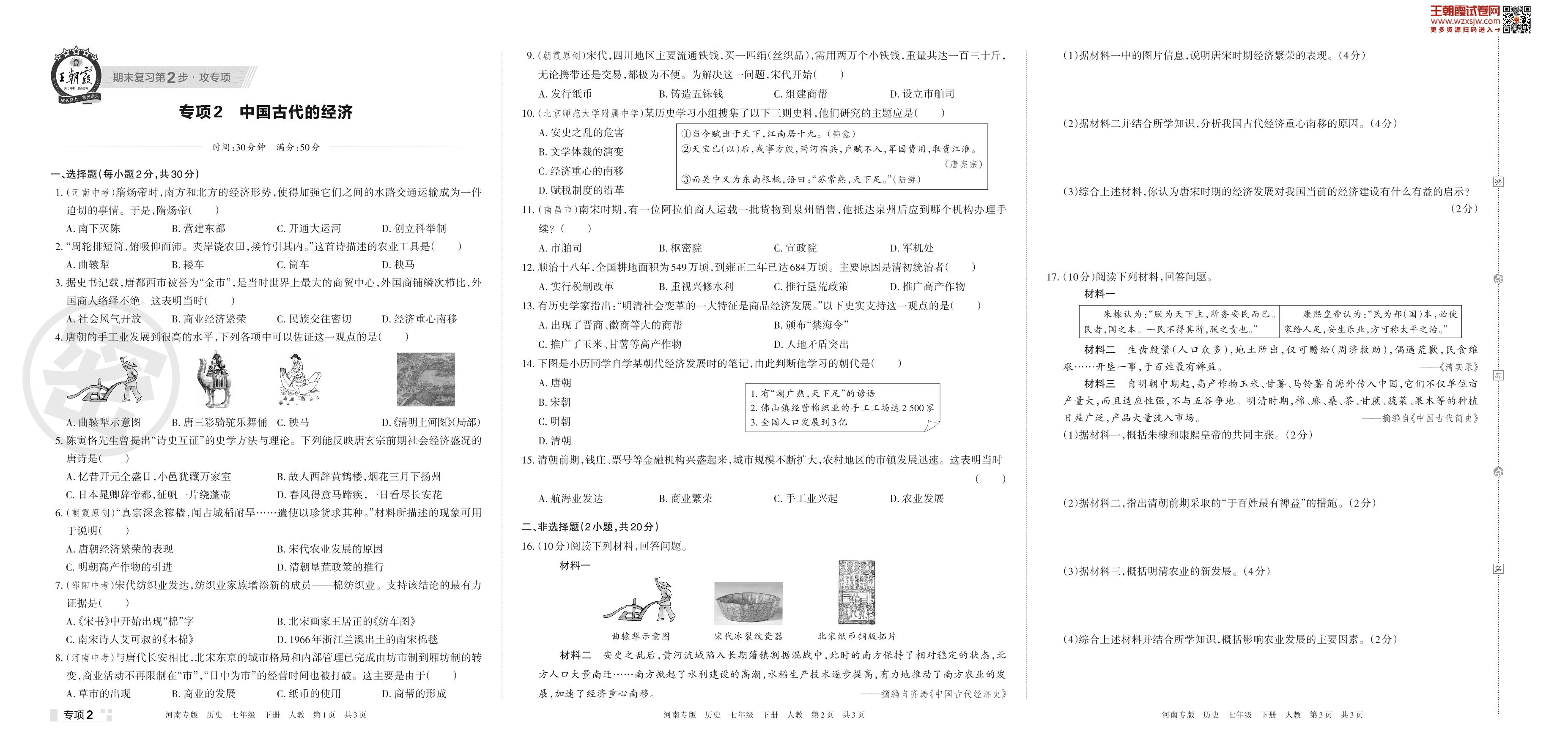 王朝霞期末专项卷——中国古代的经济七年级下册历史(人教版)_R230426110938145【2】