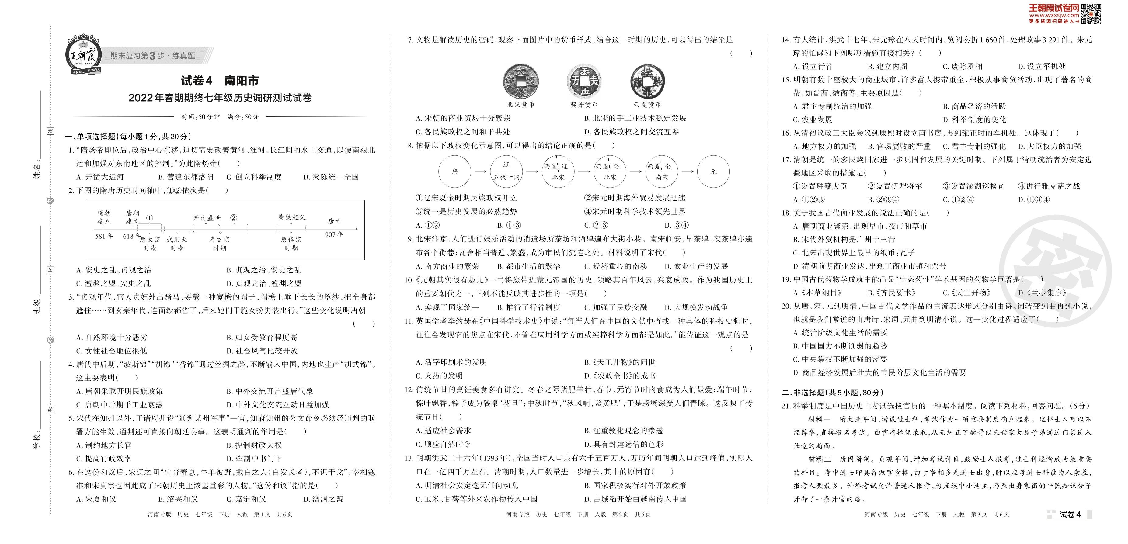 七年级历史人教版下册期末卷