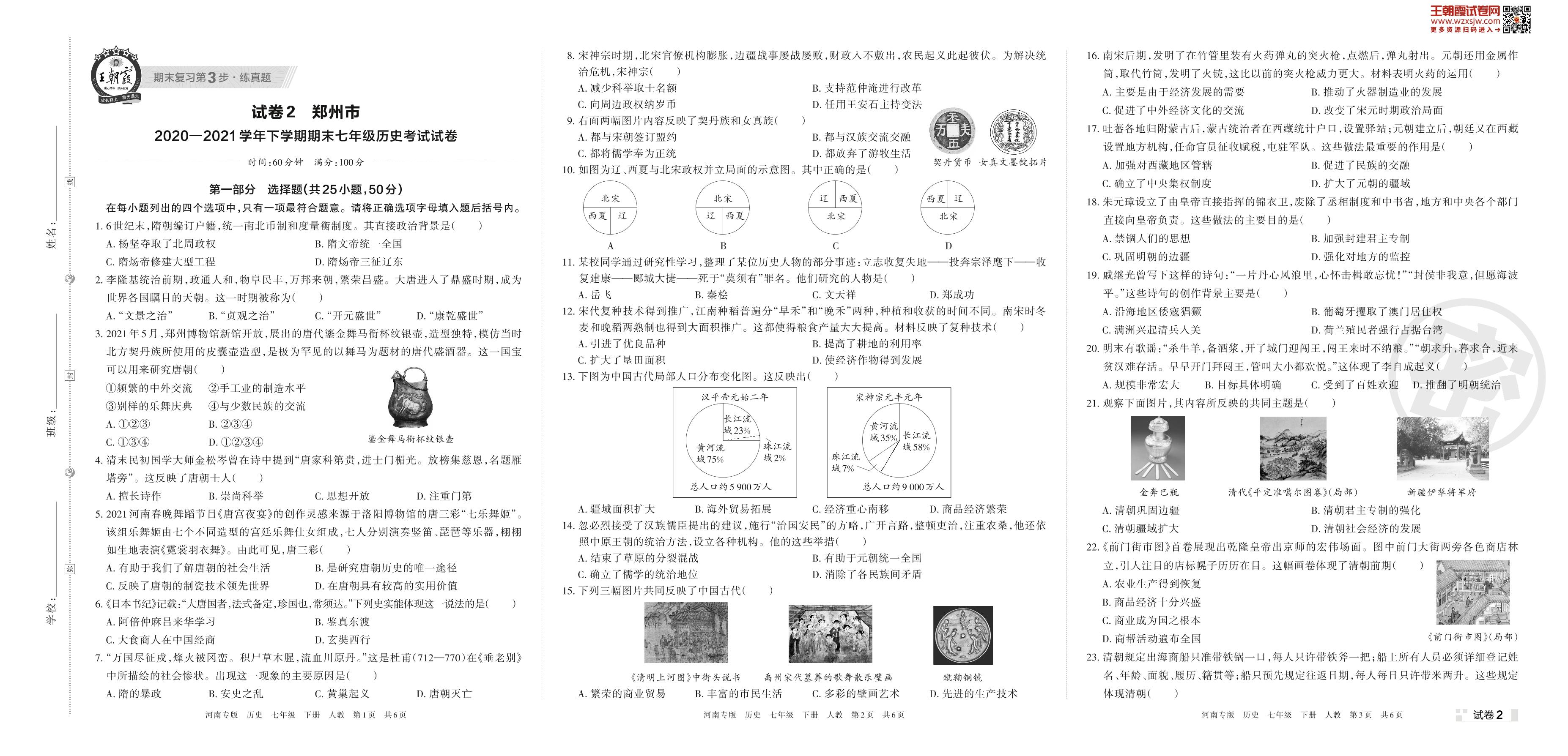 郑州市2020—2021学年下学期期末七年级历史考试试卷(人教版)【2】