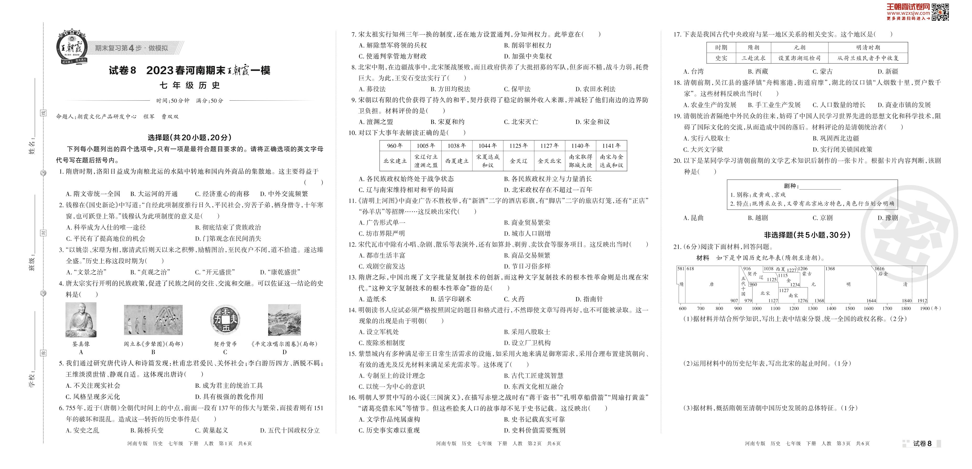 王朝霞期末模拟卷七年级下册历史(人教版)_R230426110939545【8】