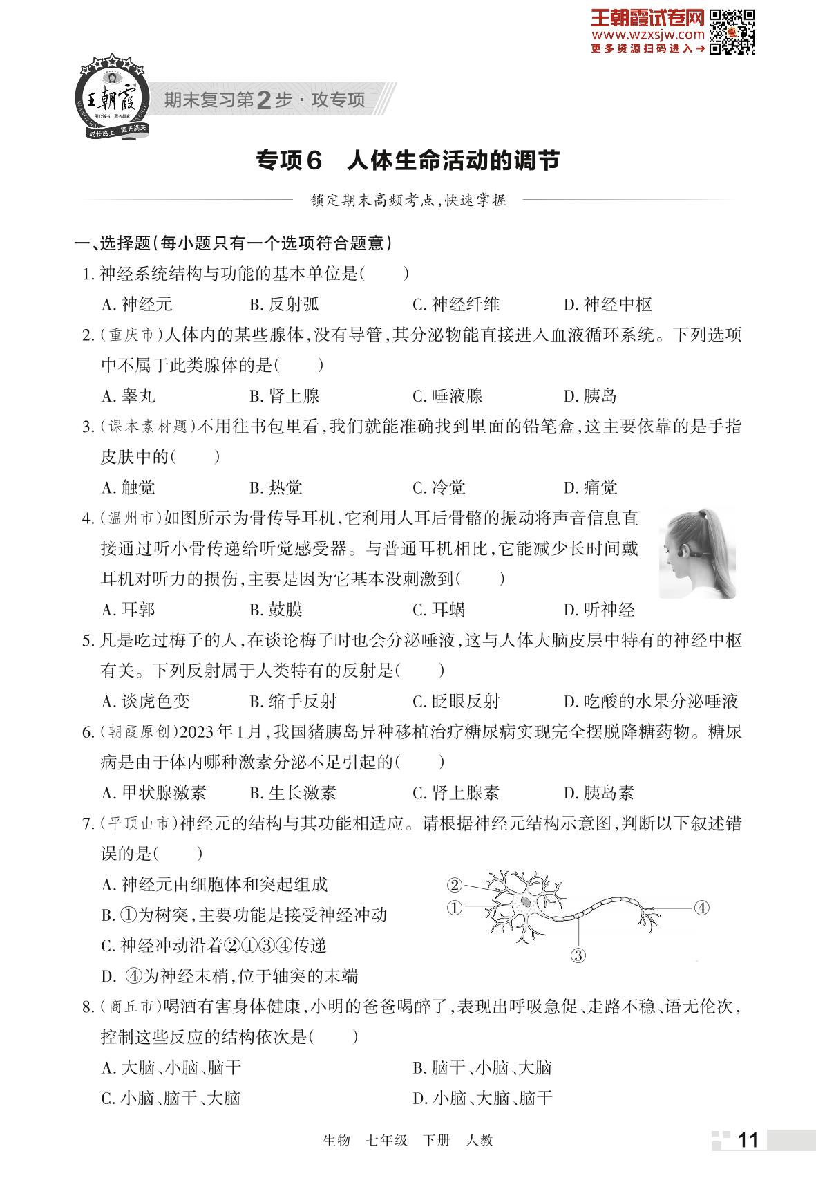 王朝霞期末专项卷——人体生命活动的调节七年级下册生物(人教版)_R230426111739643【6】