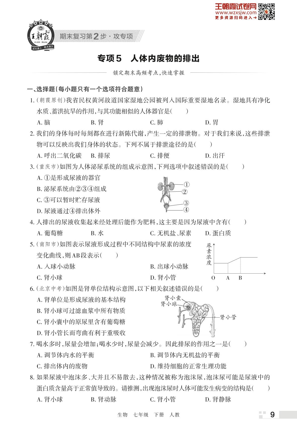 王朝霞期末专项卷——人体内废物的排出七年级下册生物(人教版)_R230426111739829【5】