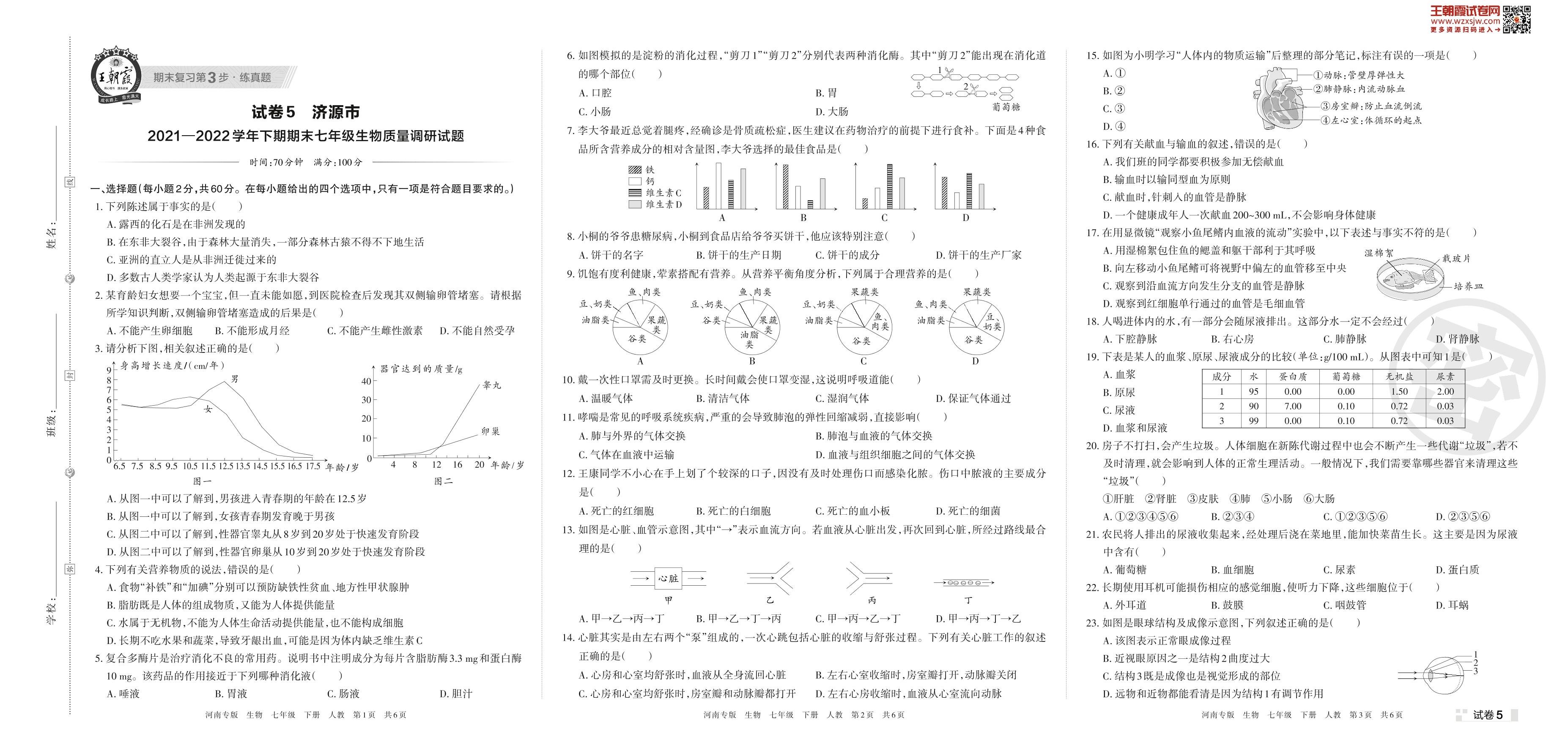 济源市2021—2022学年下期期末七年级生物质量调研试题(人教版)【5】