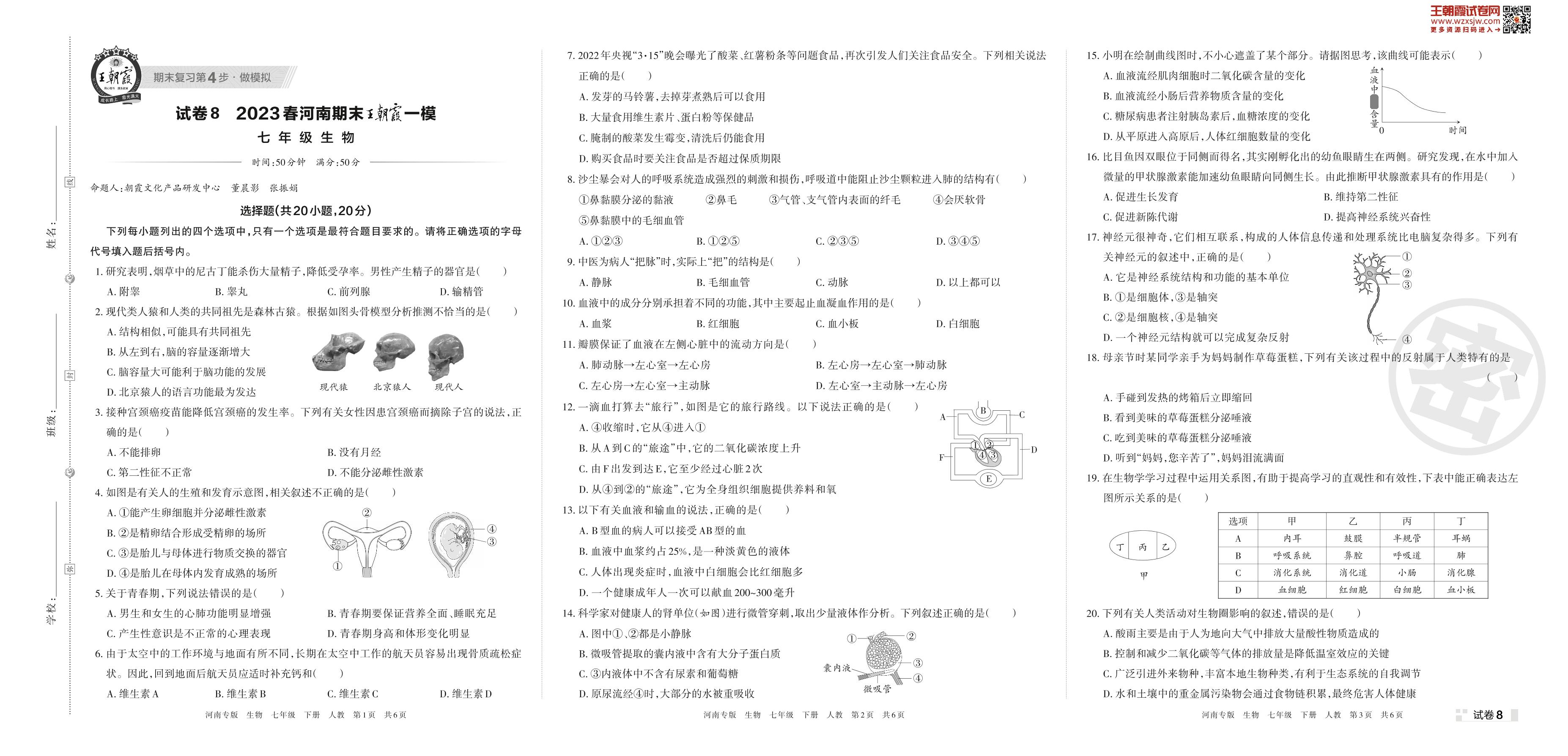 王朝霞期末模拟卷七年级下册生物(人教版)【8】