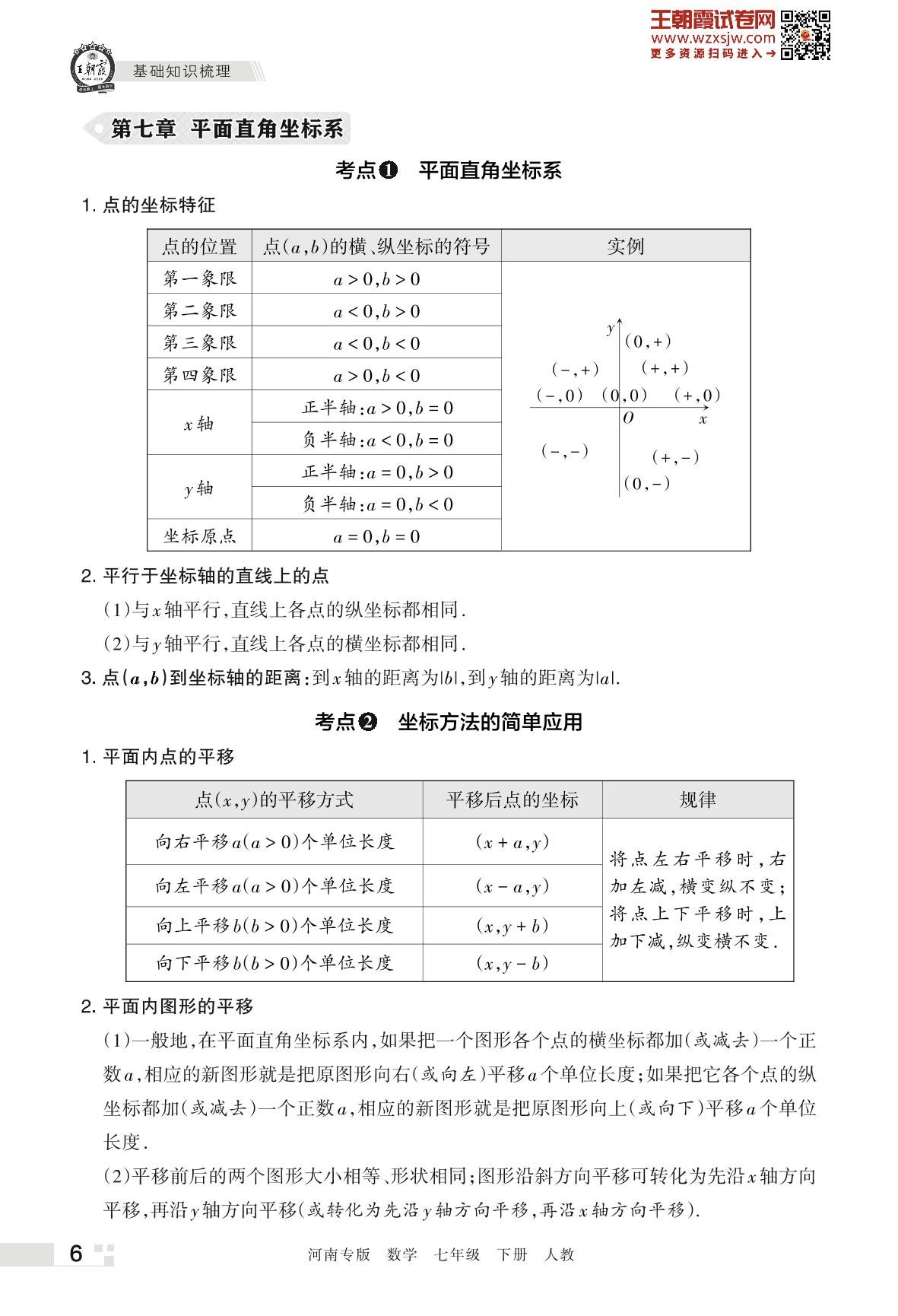 王朝霞期末知识梳理——第七章 平面直角坐标系七年级下册数学(人教版)_R230426112615687