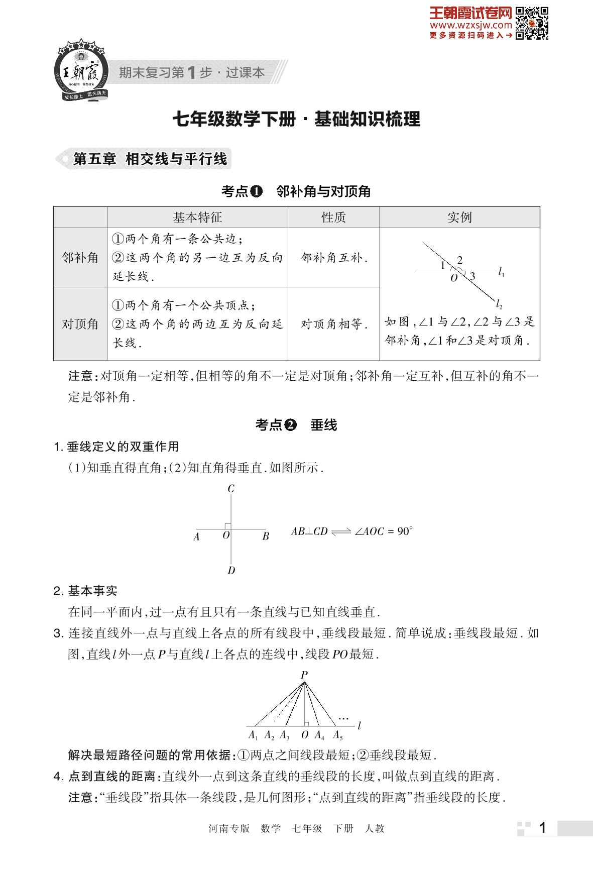 王朝霞期末知识梳理——第五章 相交线与平行线七年级下册数学(人教版)_R230426112615086
