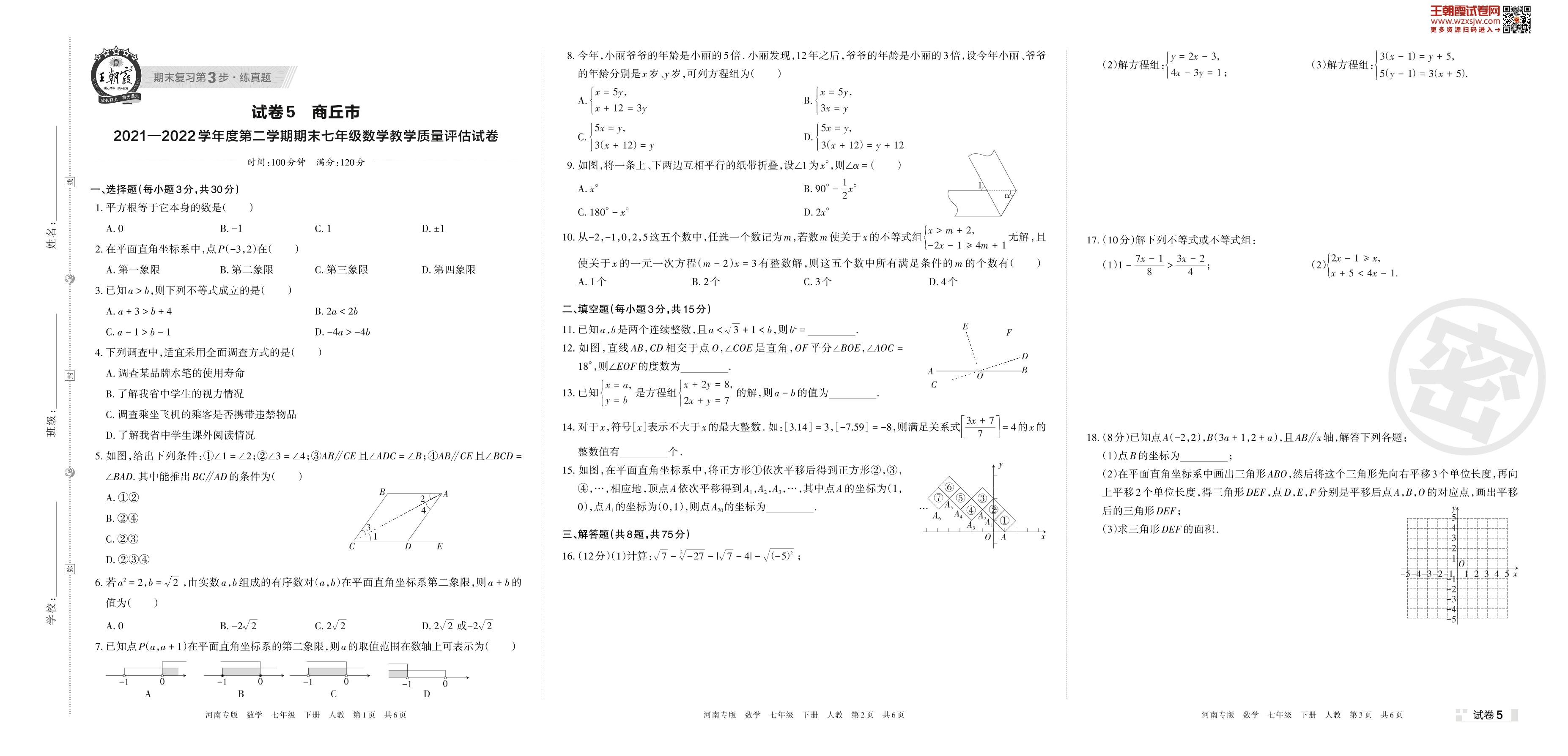 商丘市2021—2022学年度第二学期期末七年级数学教学质量评估试卷(人教版)【5】