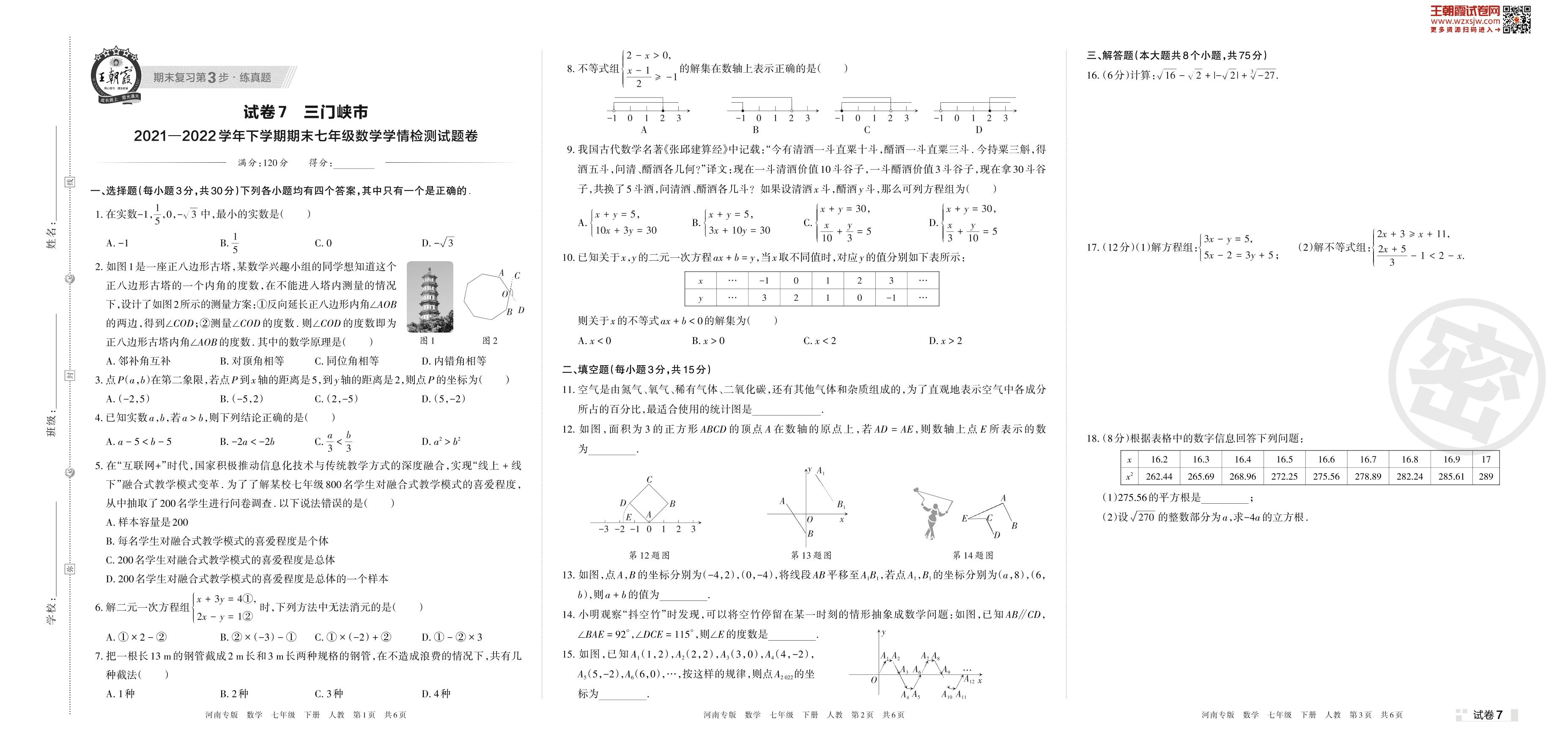 三门峡市2021—2022学年下学期期末七年级数学学情检测试题卷(人教版)【7】