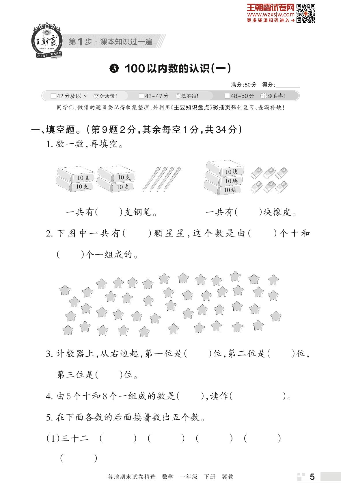 王朝霞期末过课本——3 100以内数的认识(一)一年级下册数学(冀教版)