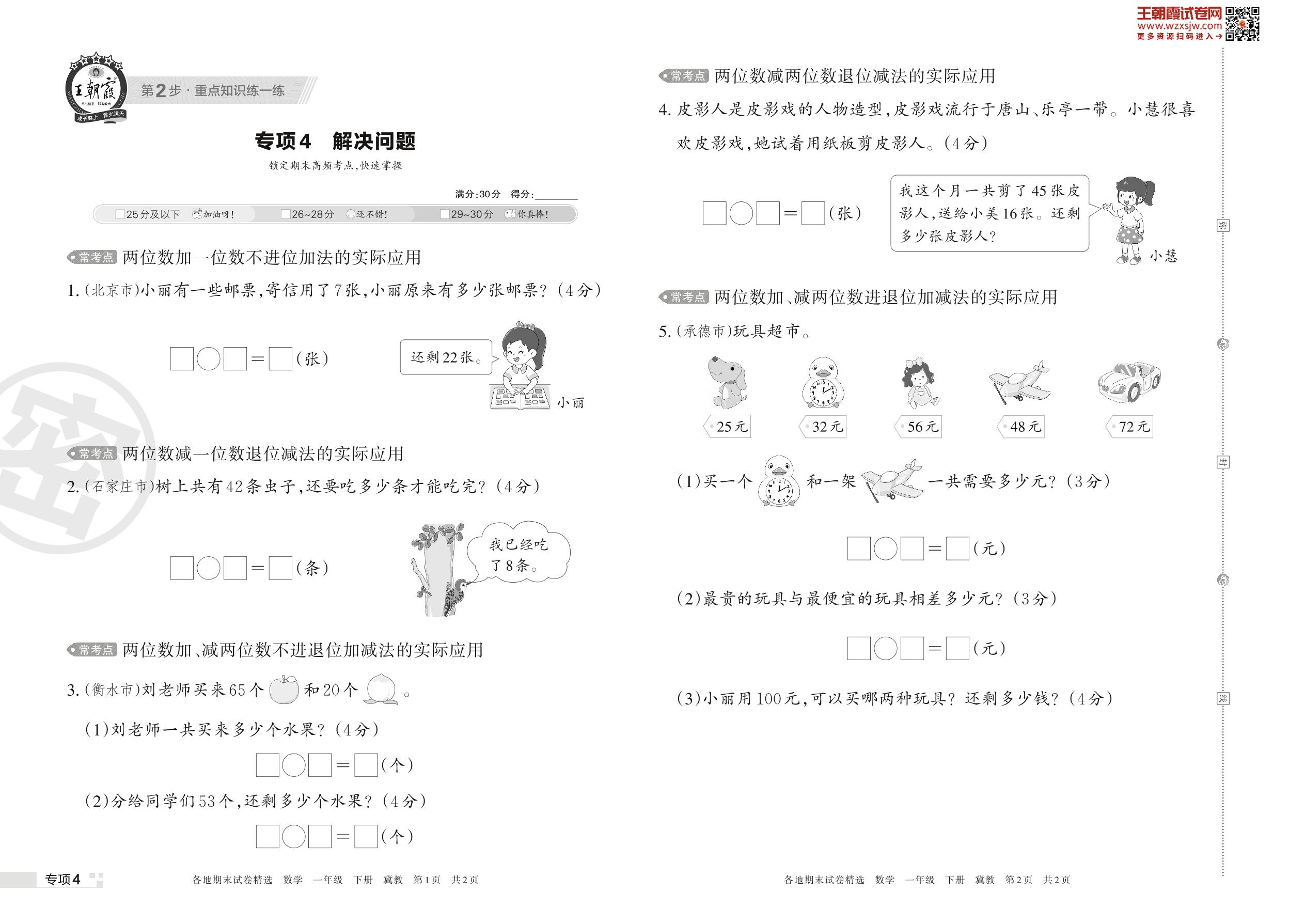 王朝霞期末专项卷——解决问题一年级下册数学(冀教版)_R230426135524141【4】