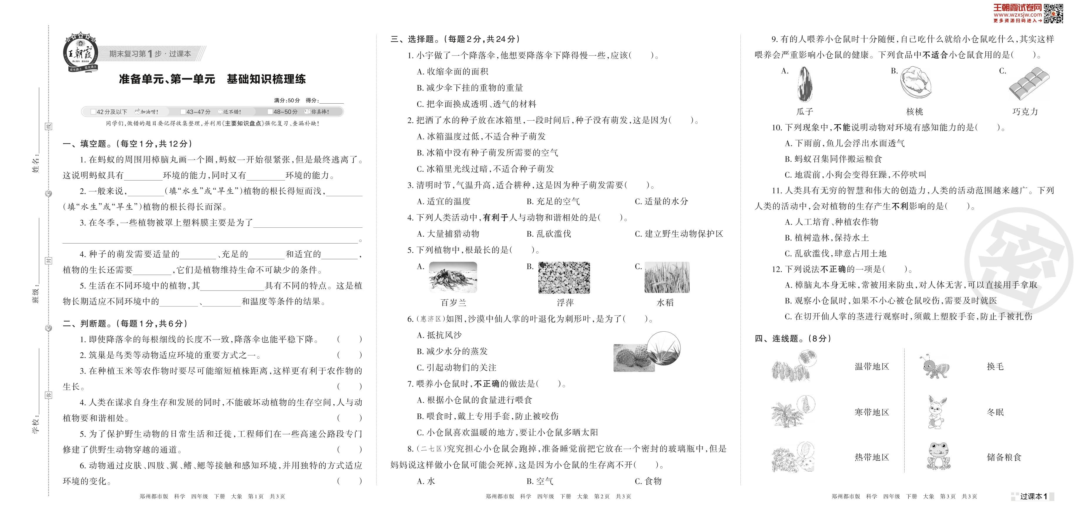 王朝霞期末过课本——准备单元、第一单元 基础知识梳理练四年级下册科学(大象版)_R230426140917103