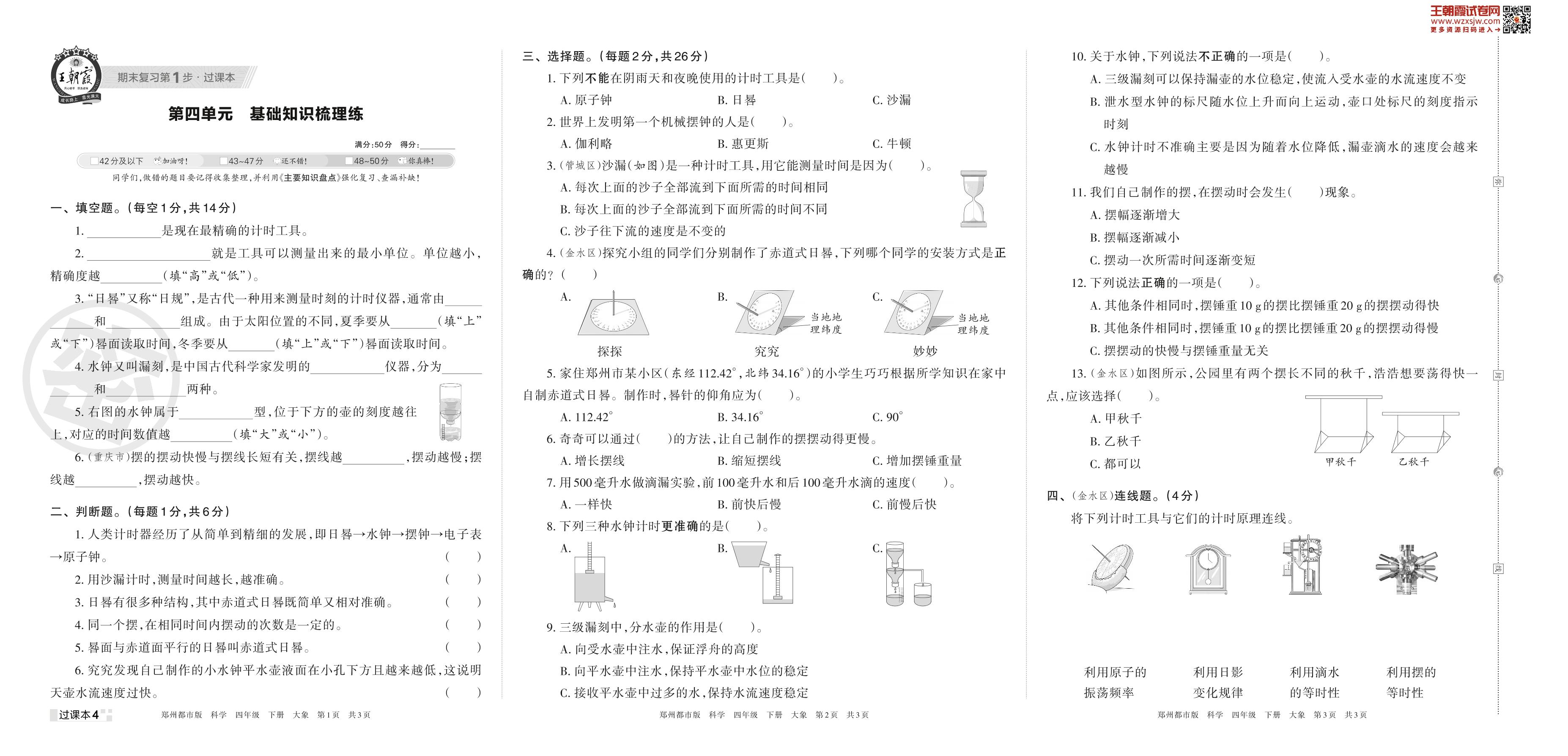 王朝霞期末过课本——第四单元 基础知识梳理练四年级下册科学(大象版)_R230426140918138