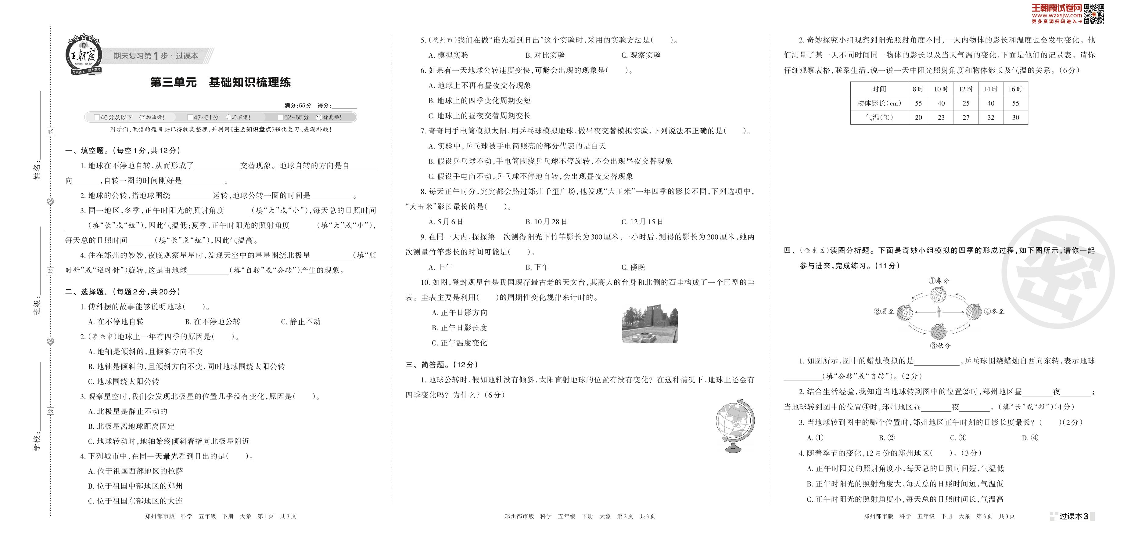 王朝霞期末过课本——第三单元 基础知识梳理练五年级下册科学(大象版)_R230426141444310