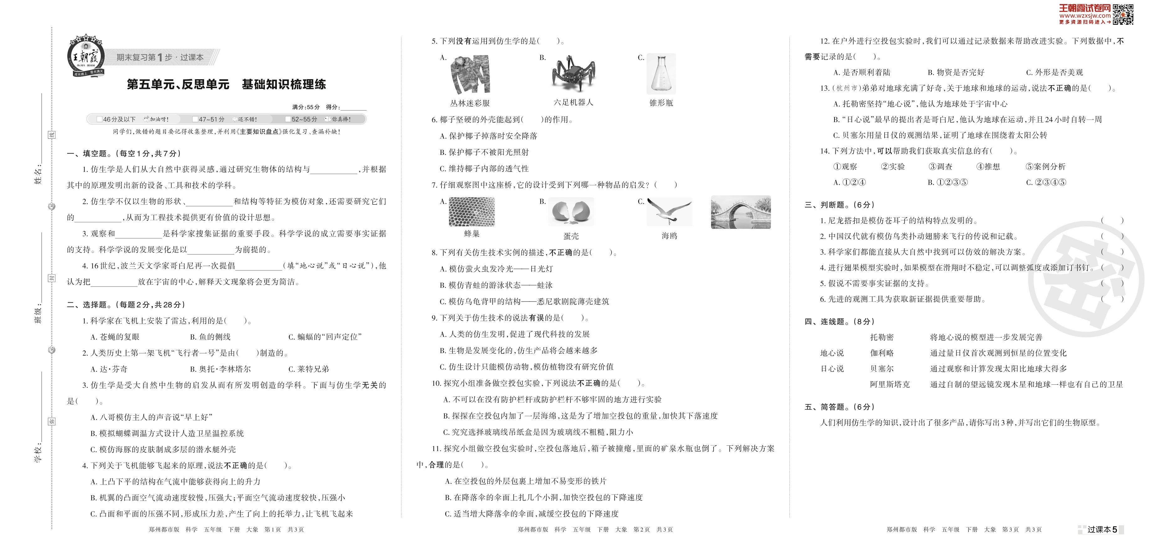 王朝霞期末过课本——第五单元、反思单元 基础知识梳理练五年级下册科学(大象版)_R230426141445624