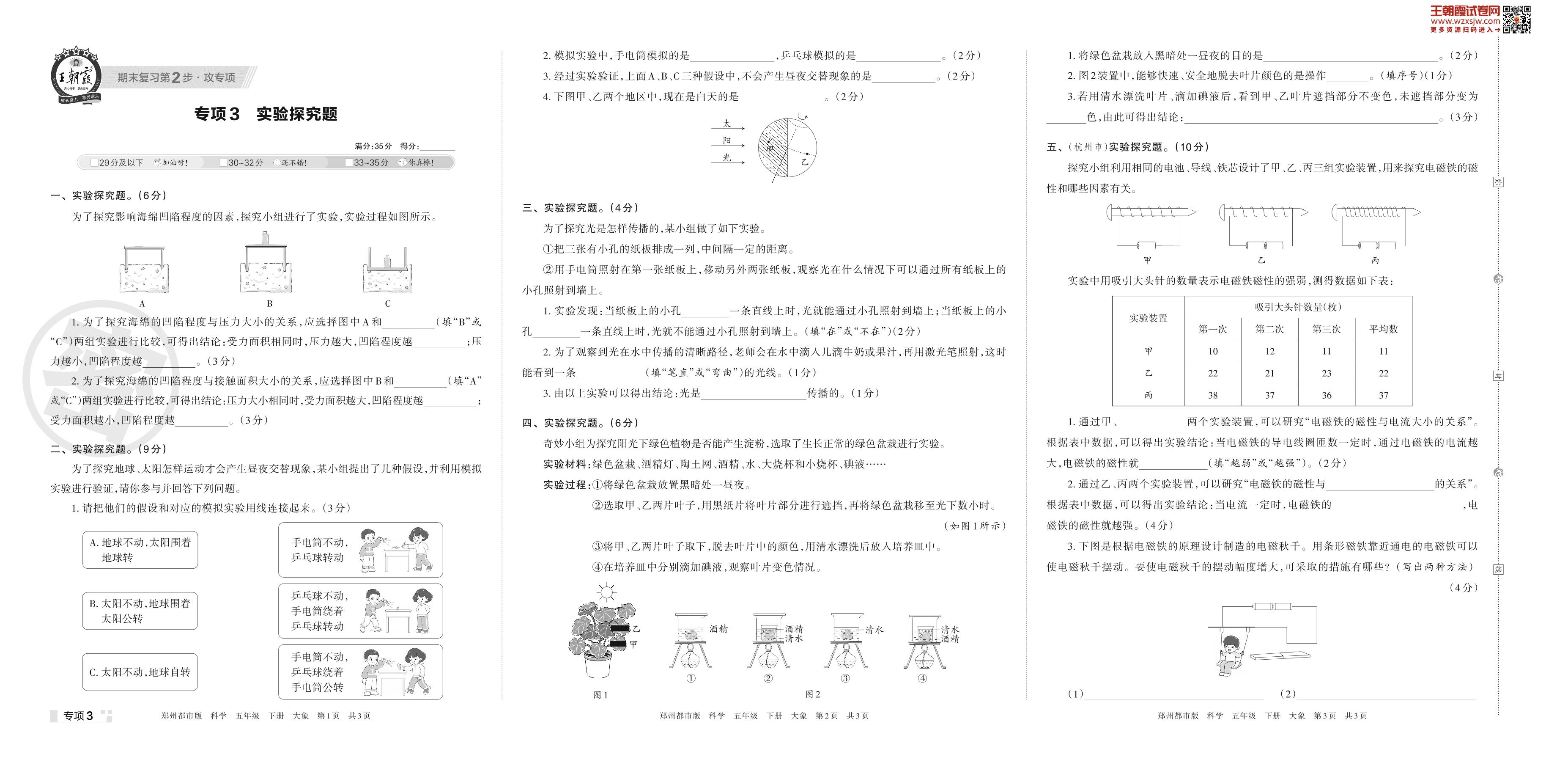 王朝霞期末专项卷——实验探究题五年级下册科学(大象版)【3】