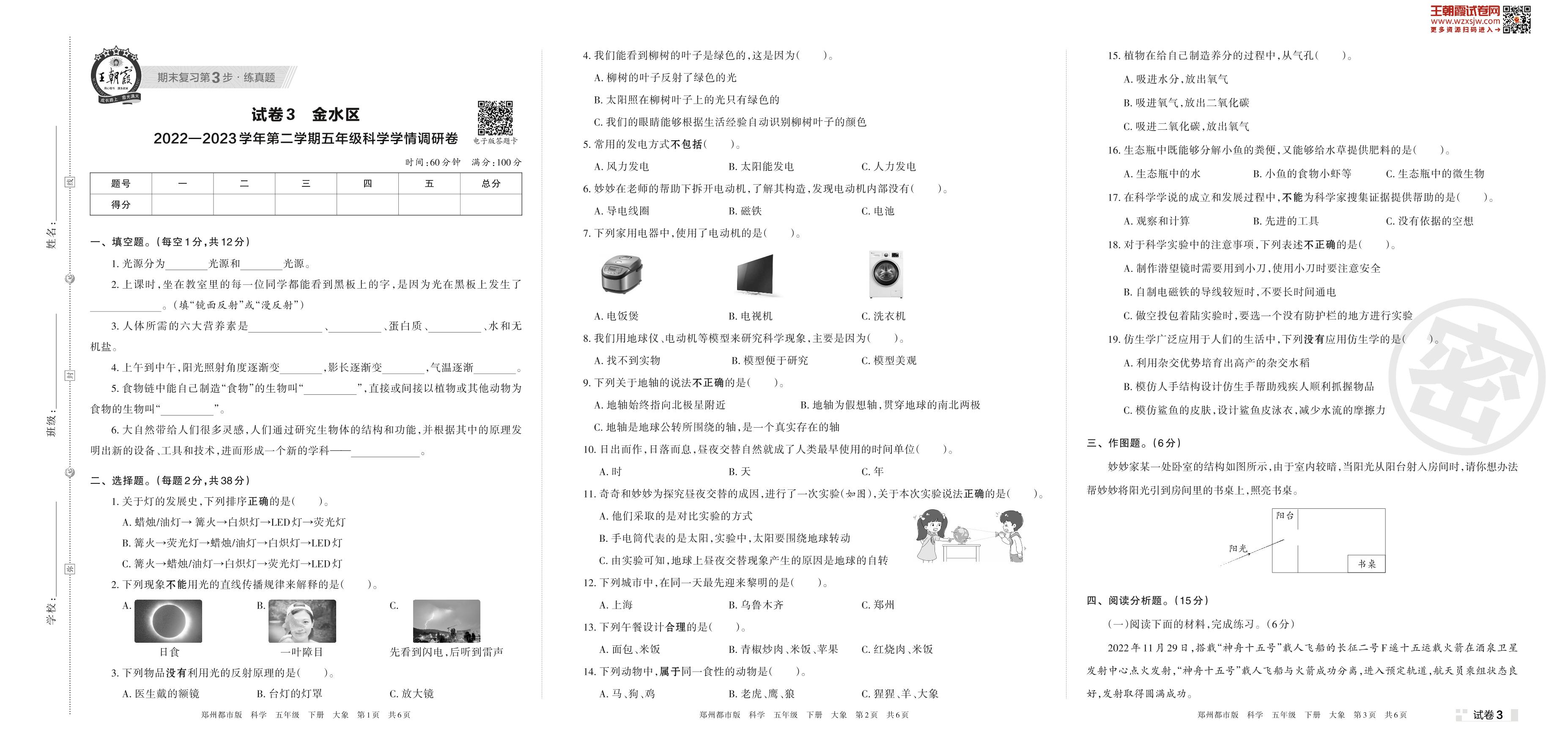 金水区2022—2023学年第二学期五年级科学学情调研卷(大象版)【3】
