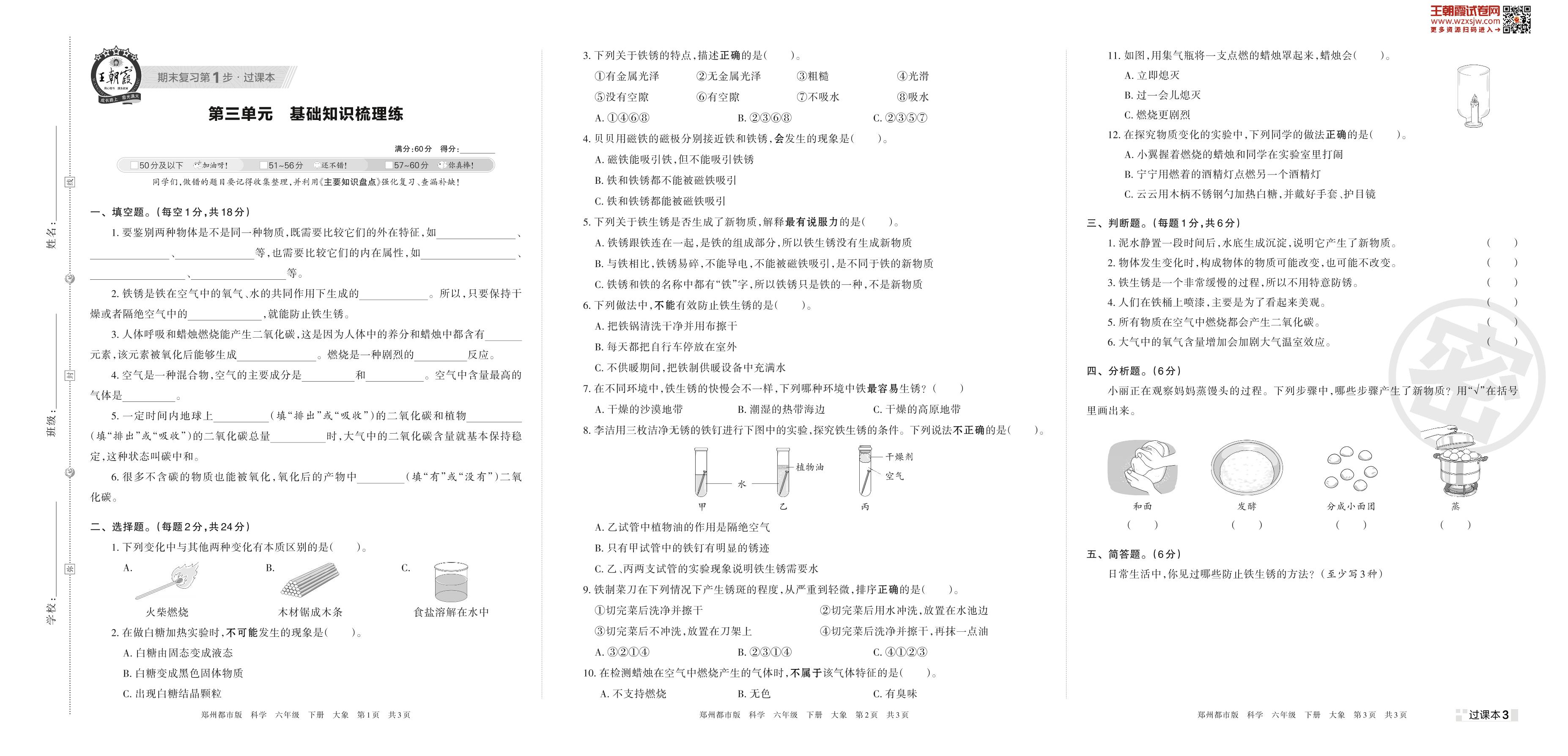 王朝霞期末过课本——第三单元 基础知识梳理练六年级下册科学(大象版)_R230426141959019