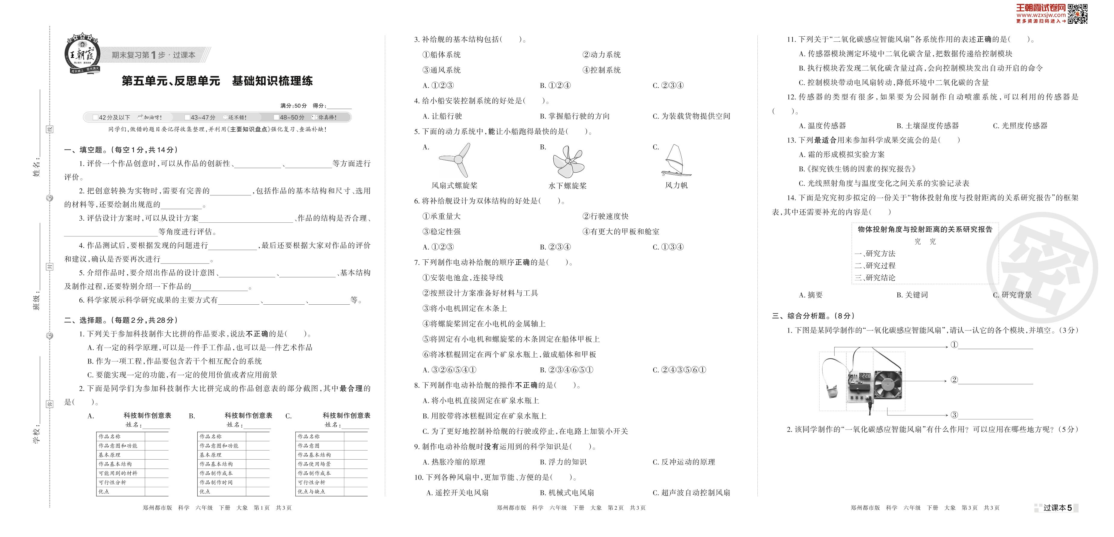 王朝霞期末过课本——第五单元、反思单元 基础知识梳理练六年级下册科学(大象版)