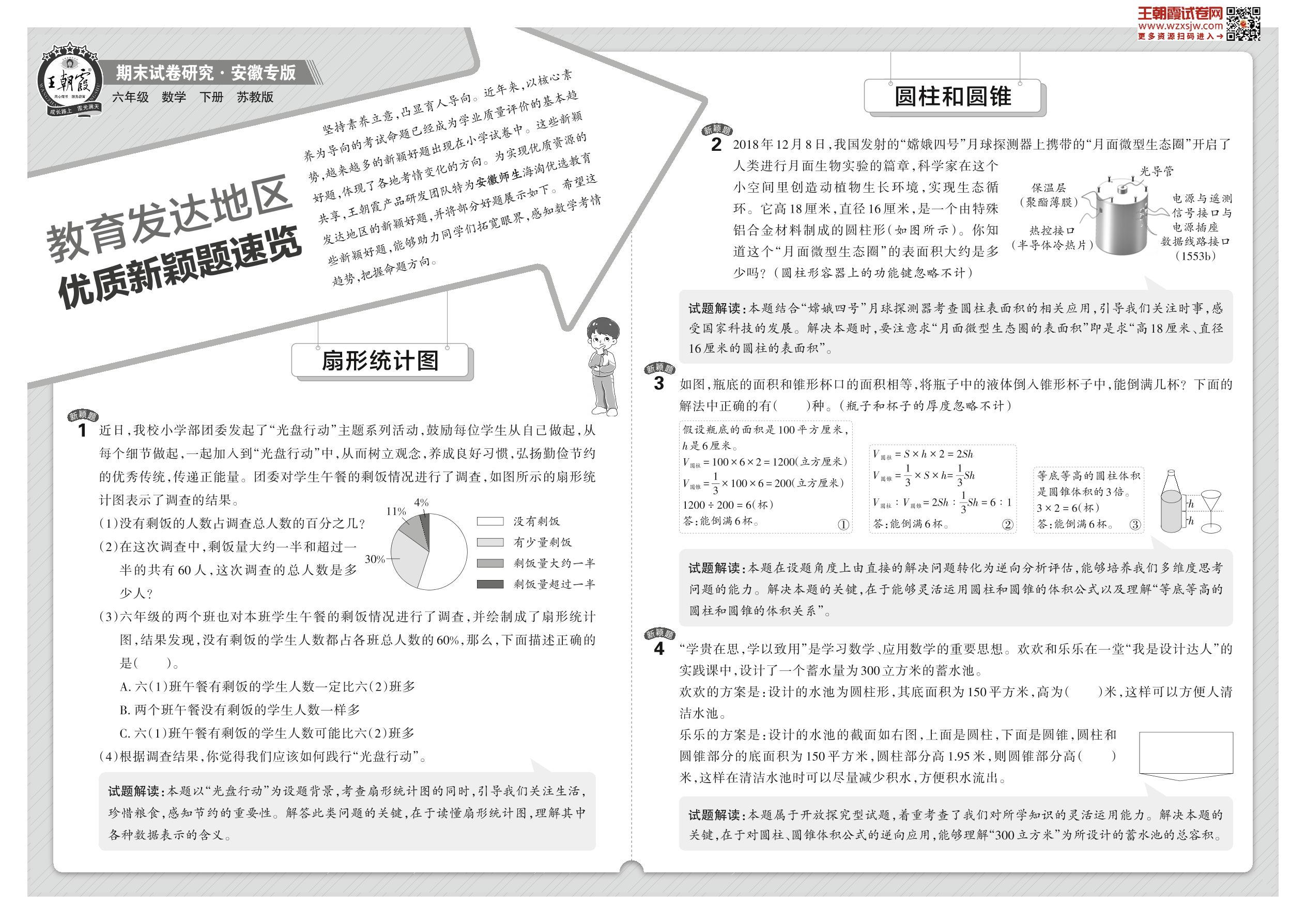 教育发达地区优质新颖题速览六年级下册数学(苏教版)