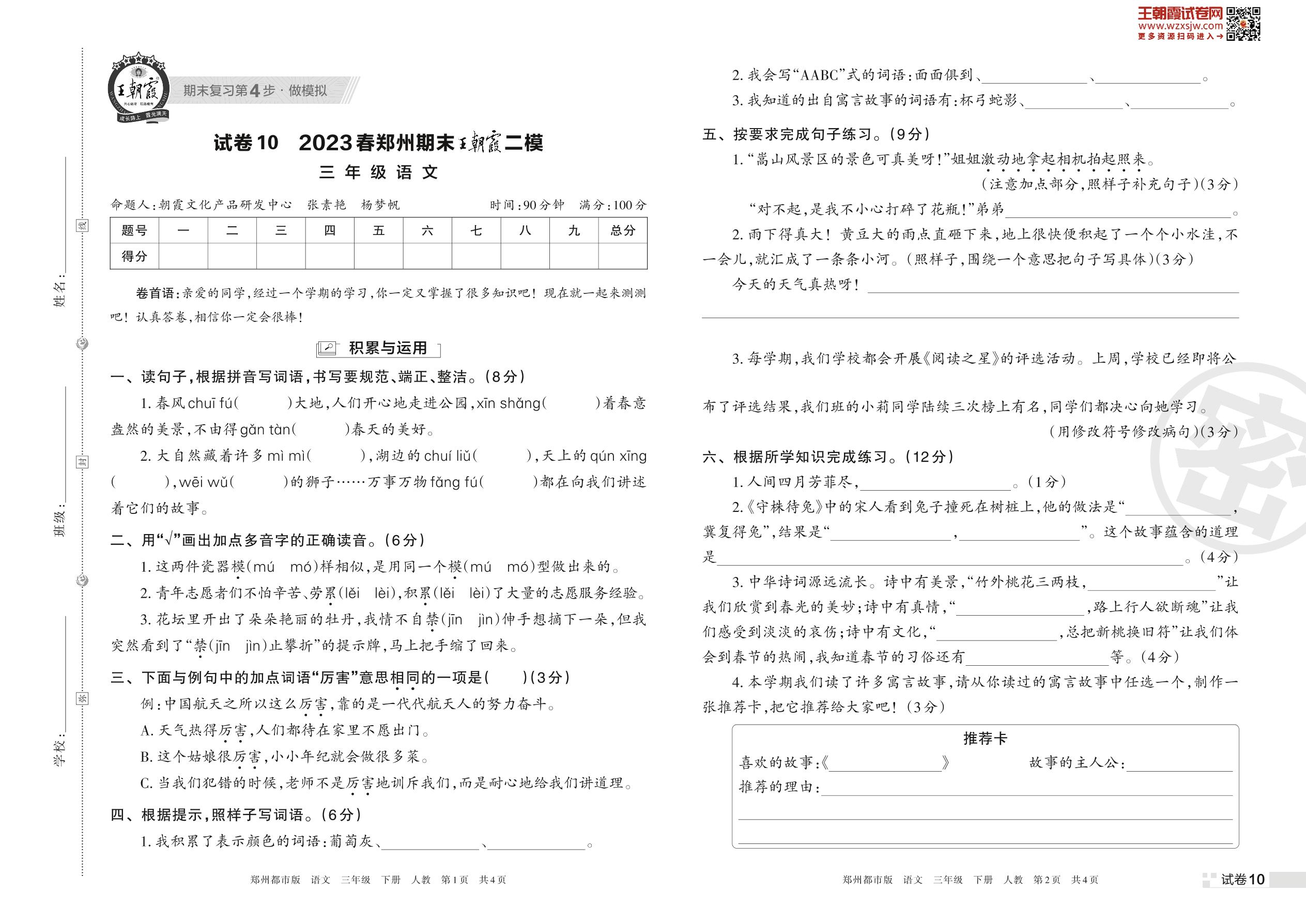 王朝霞期末模拟卷三年级下册语文(人教版)_R230426142529628【10】