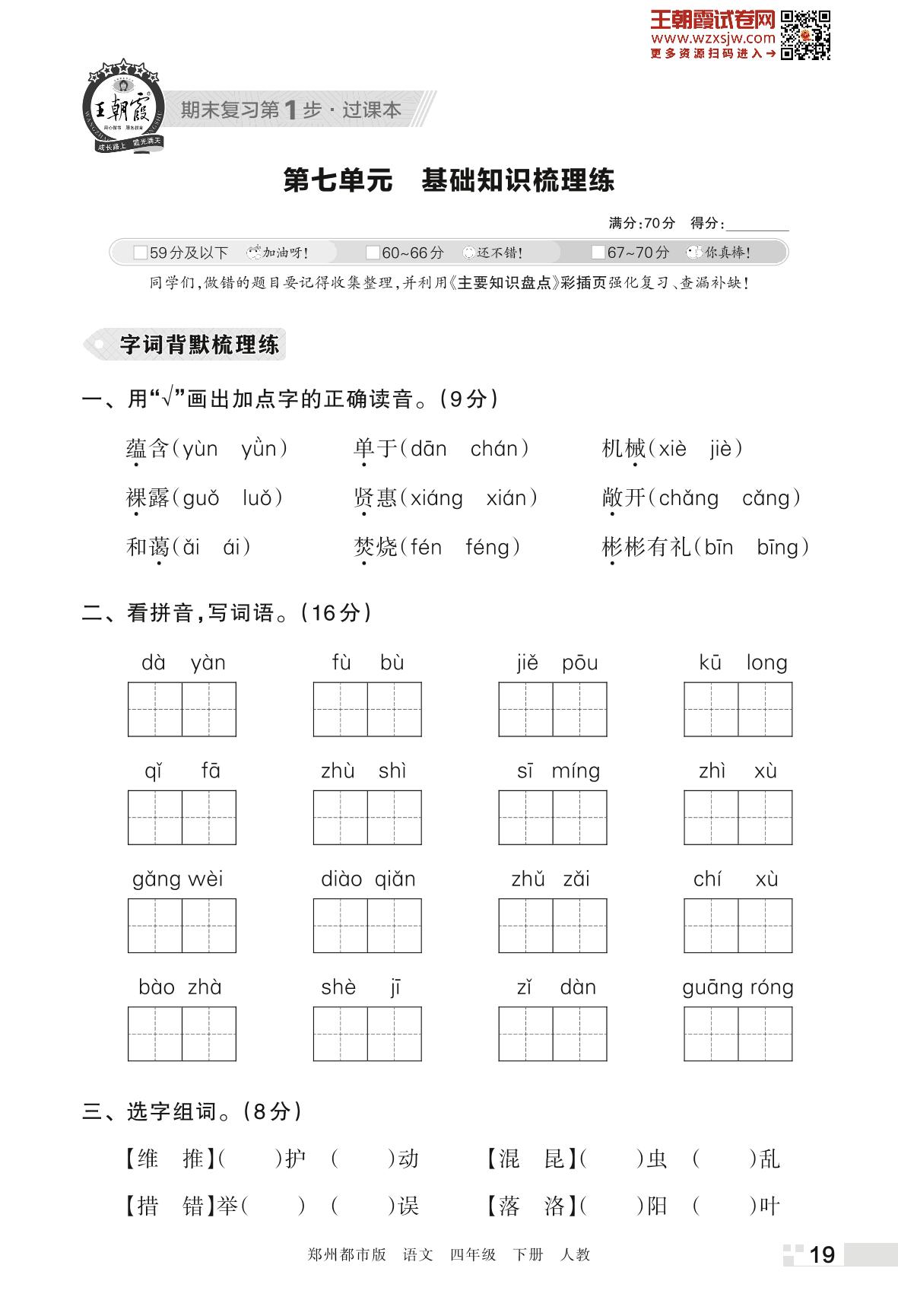 王朝霞期末过课本——第七单元 基础知识梳理练四年级下册语文(人教版)_R230426143157827