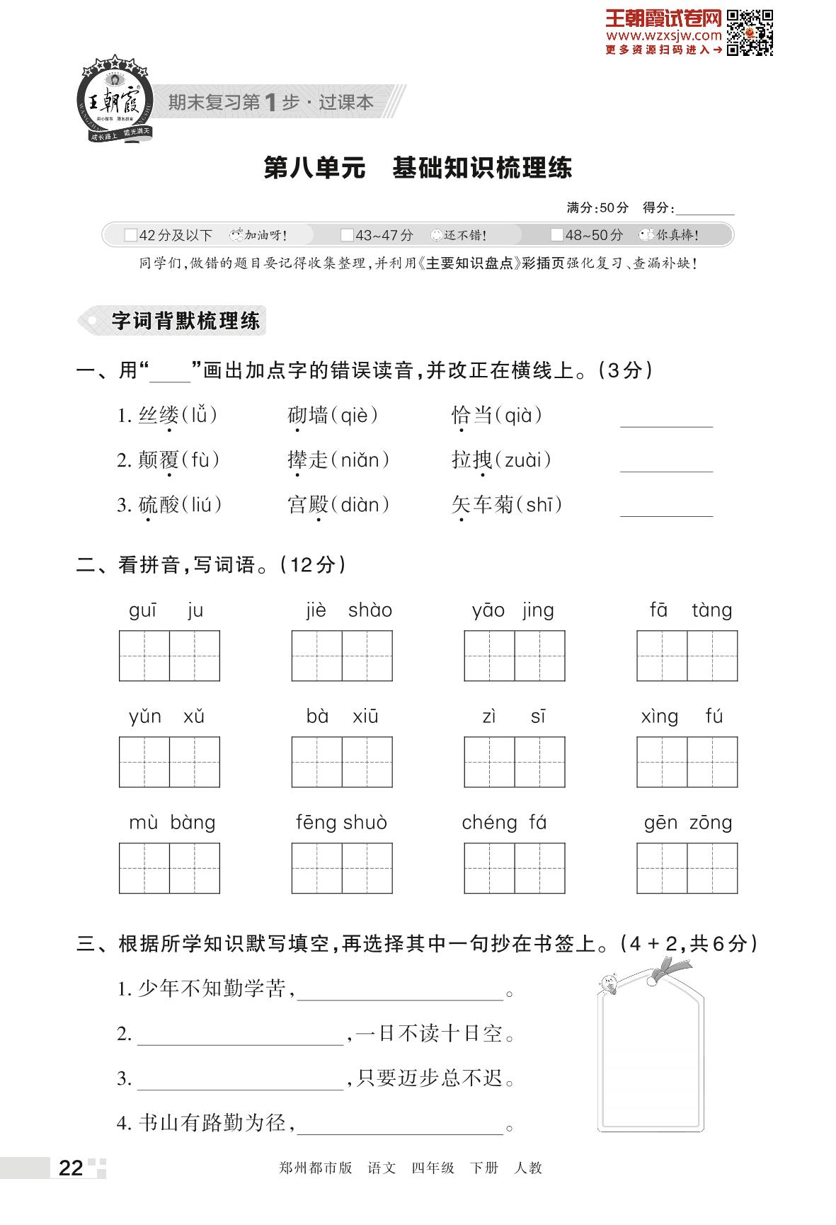 王朝霞期末过课本——第八单元 基础知识梳理练四年级下册语文(人教版)_R230426143157002