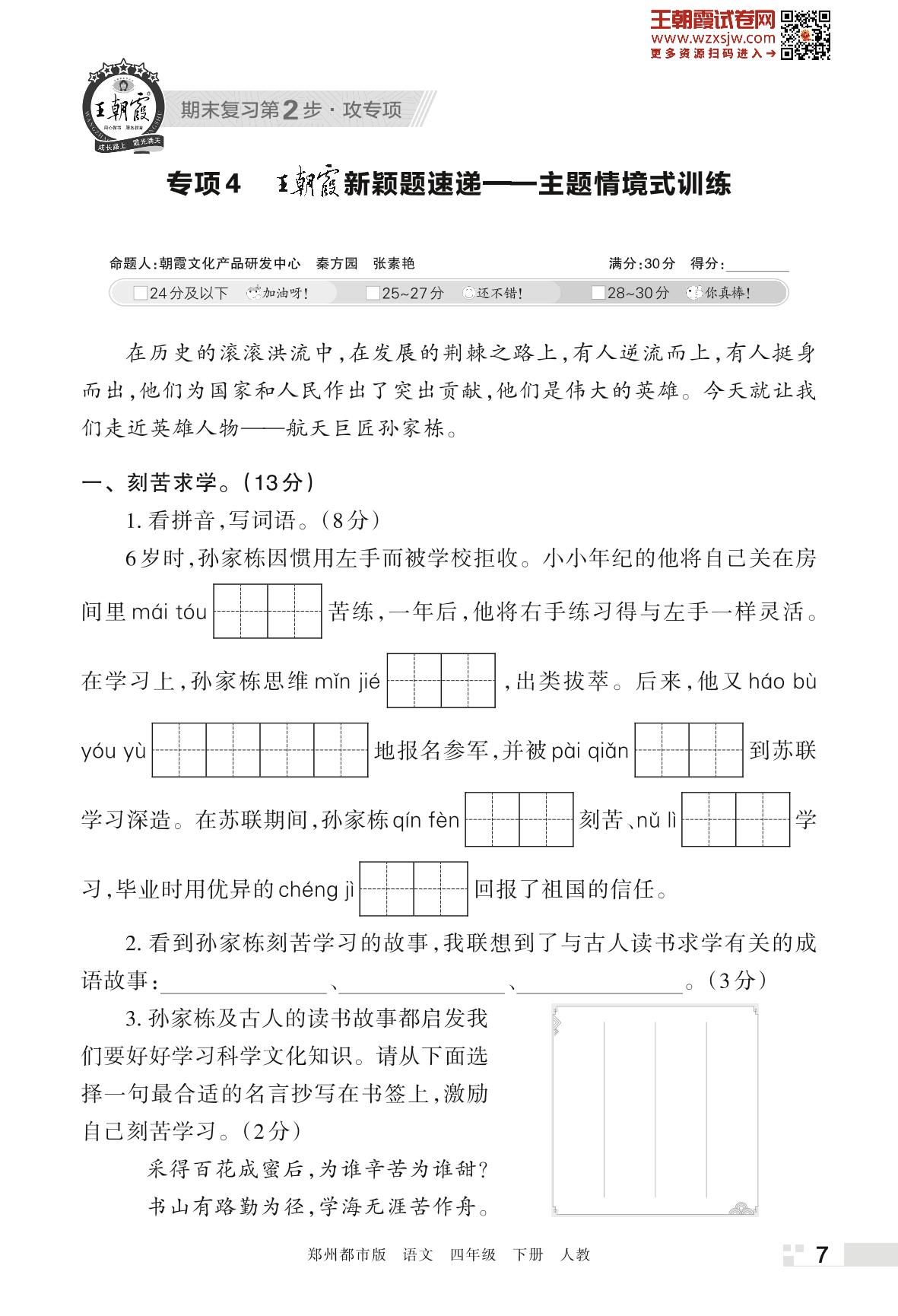 王朝霞期末专项卷——王朝霞新颖题速递:主题情境式训练四年级下册语文(人教版)_R230426143158044【4】
