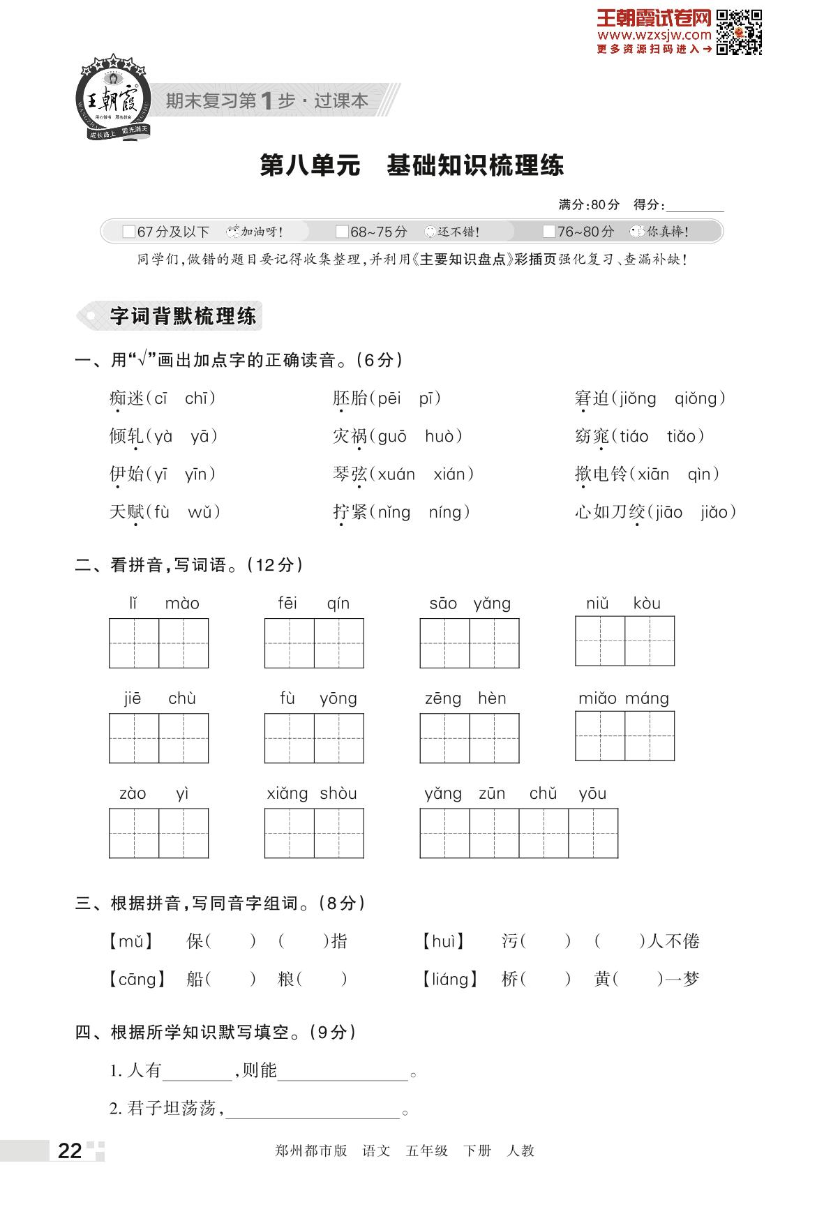 王朝霞期末过课本——第八单元 基础知识梳理练五年级下册语文(人教版)_R230426143649707