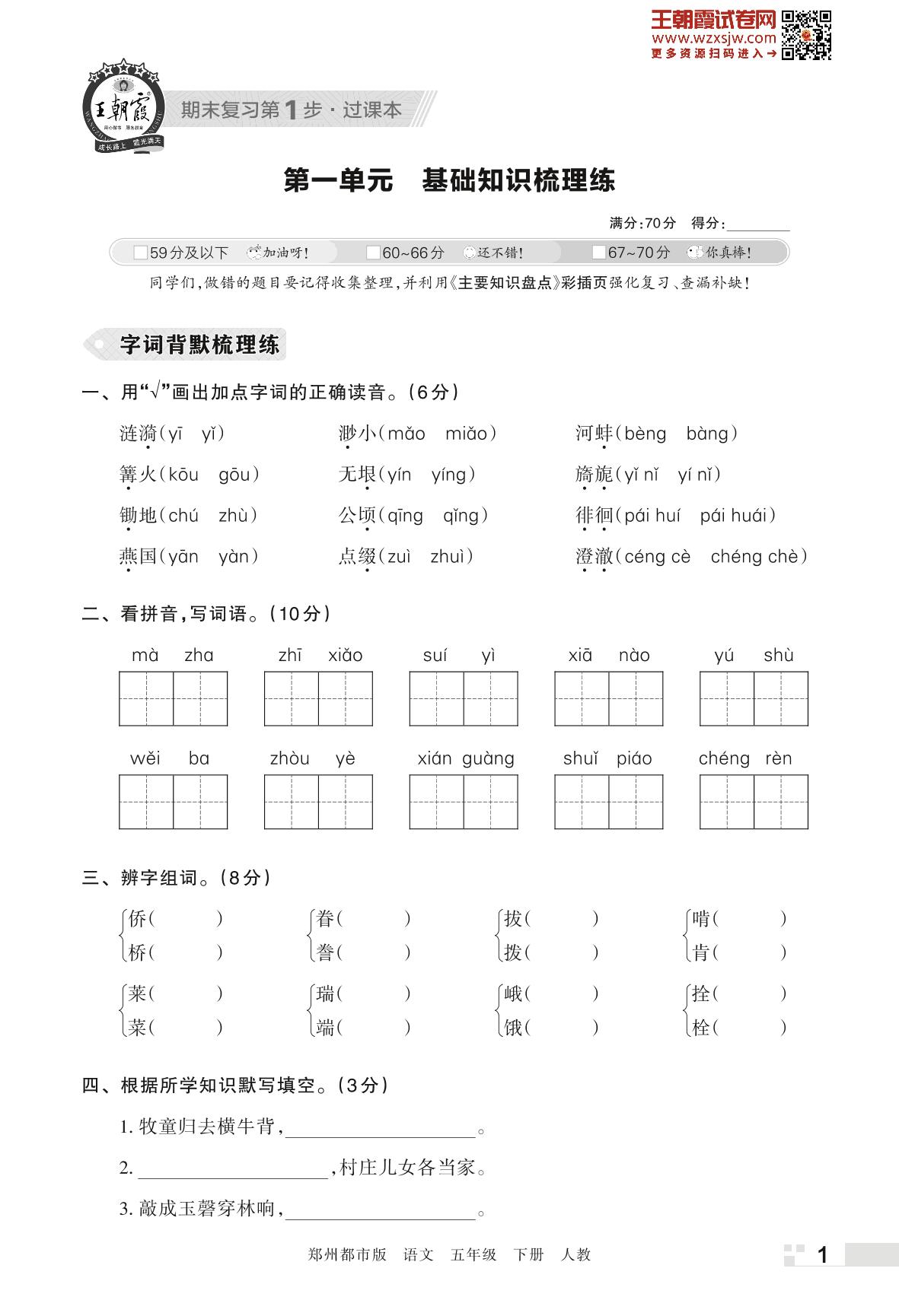 王朝霞期末过课本——第一单元 基础知识梳理练五年级下册语文(人教版)_R230426143649134