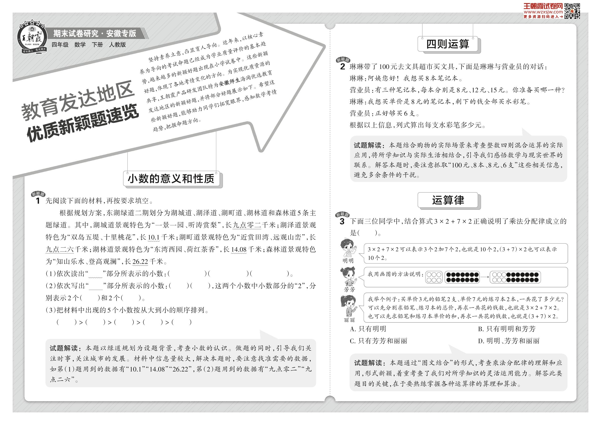 教育发达地区优质新颖题速览四年级下册数学(人教版)